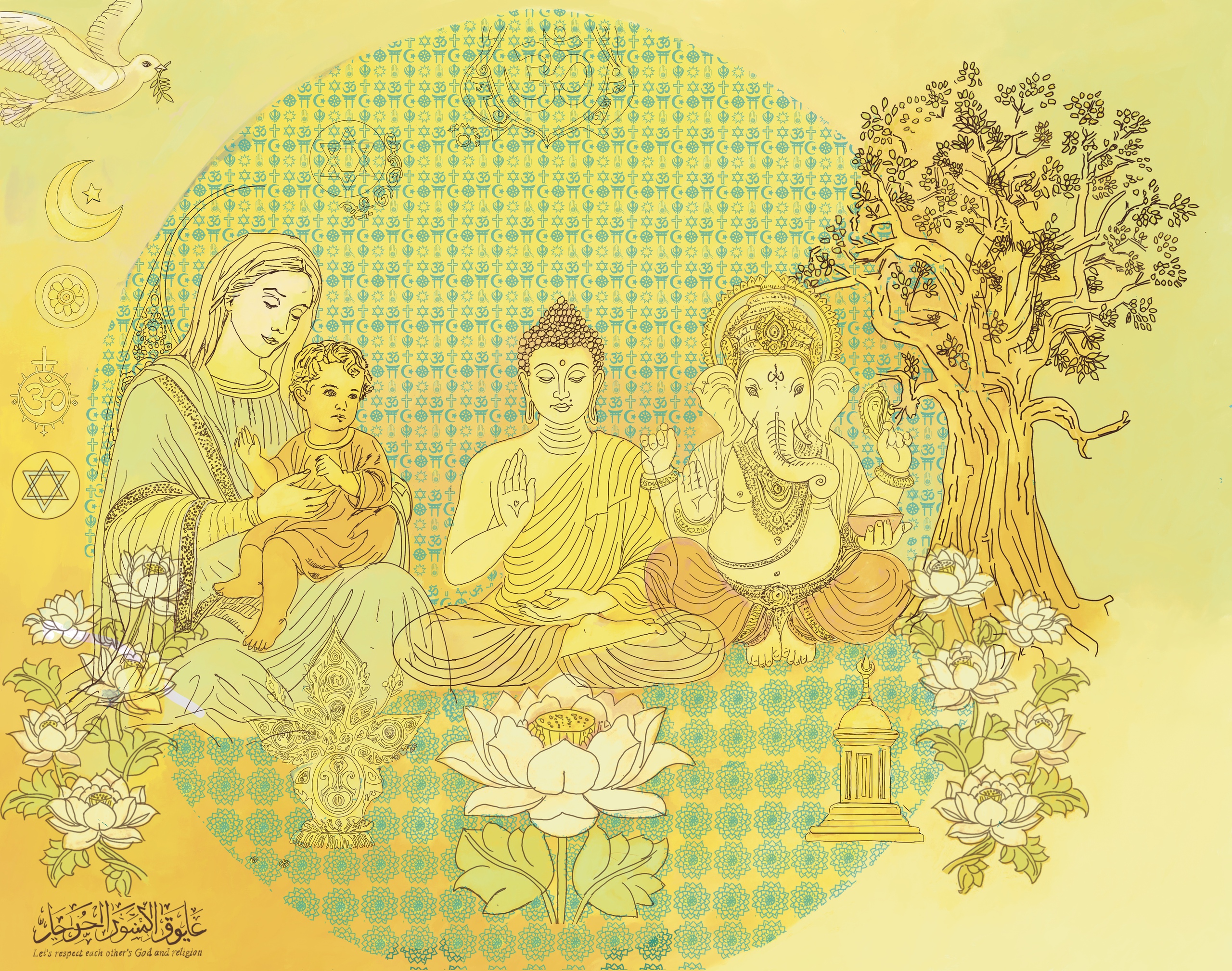 Godsdienst Religie Boeddhisme Madonna En Kind Ganesha