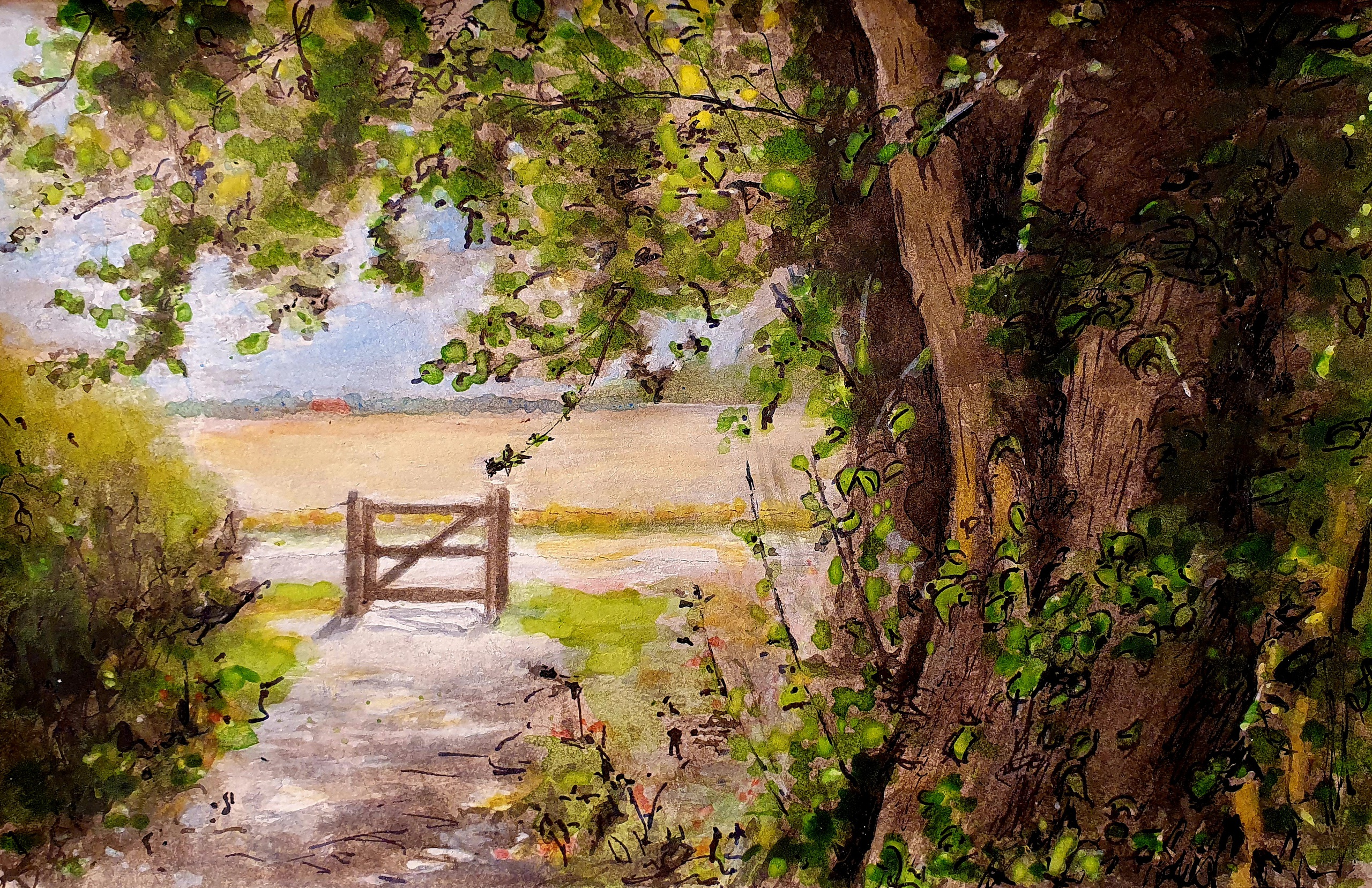 Aquarel Boom Draad Inkt Oude Hek Zomer Boerderij Het Prikkeldraad Hekje Doorkijkje Vecht Zomerzon Graanakker Nijenhuis Diffelen Boerderijwinkel Https://hetnijenhuisnl/