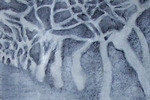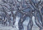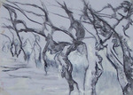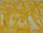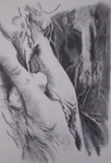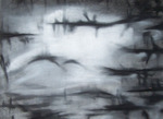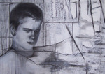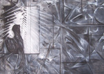 tekenwerk in gemengde techniek (acryl/hard en zacht krijt) op krantenpapier
