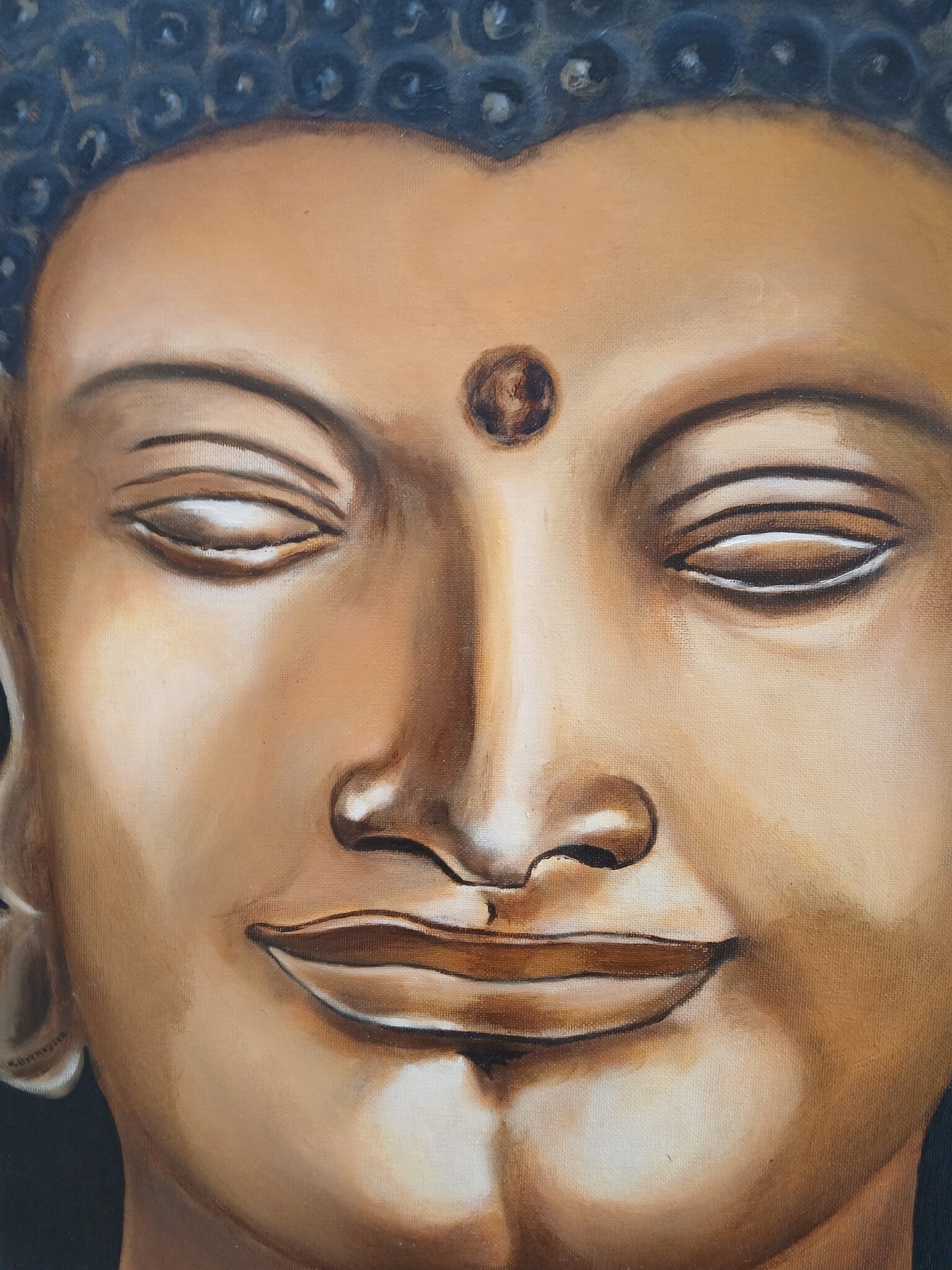 Boedha olieverf op canvasbord.