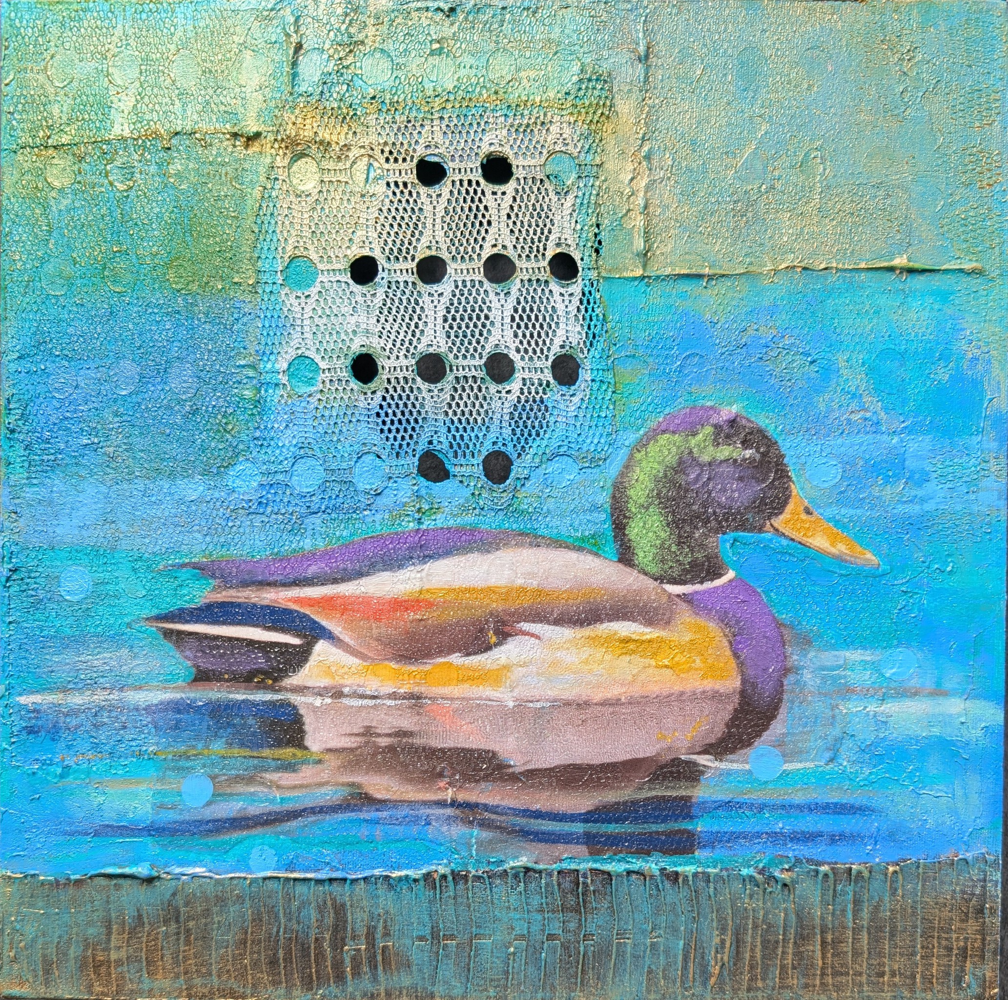Eend Kleurrijk Acrylverf Mixed Media Linnen Verhalend Water Rustig