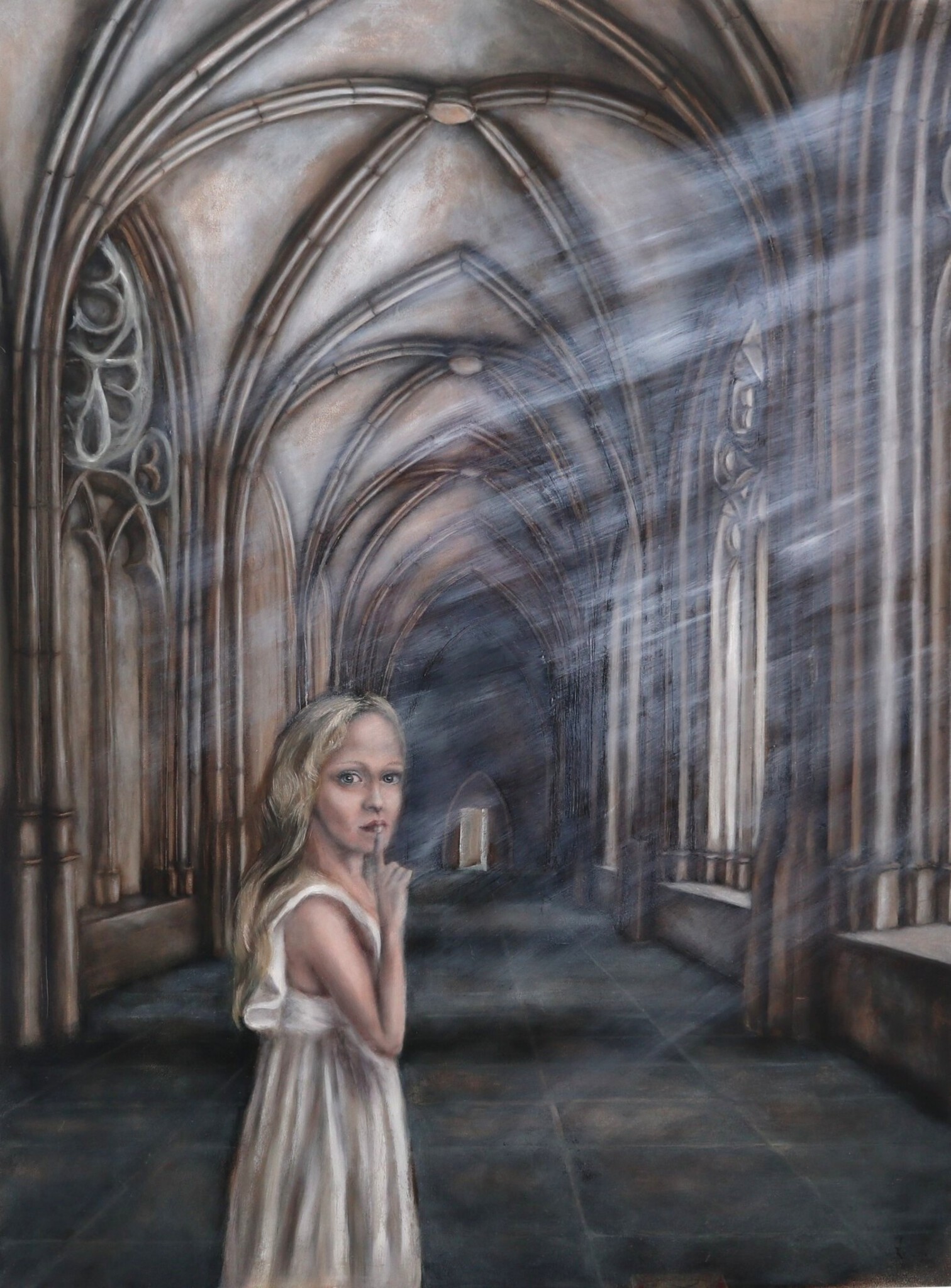 Ik schilder met olieverf. Mijn onderwerpen worden geïnspireerd door ons bewustzijn, het hogere, onsterfelijke liefde, mens met zijn gevoel, onvolkomenheid, en toch geschapen met goddelijke perfectie.