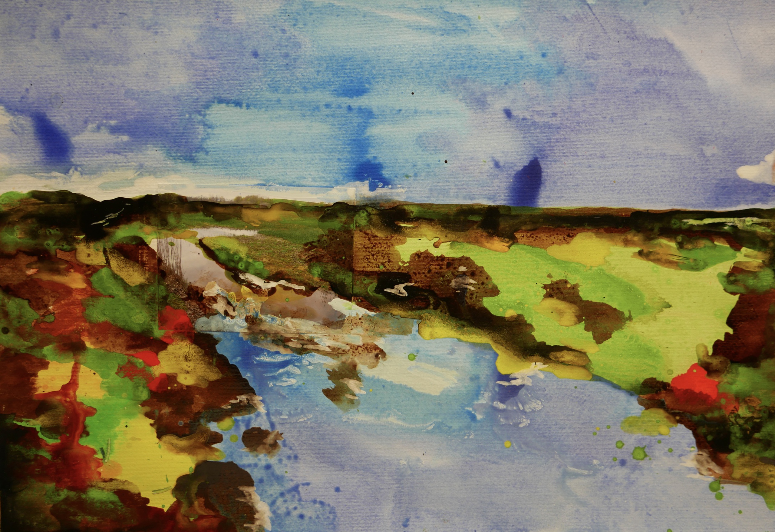 Thema in mijn werk is vaak de horizon. Het landschap dat voor je voeten ligt waar de horizon je uitnodigt om na te denken waar je vandaan komt en waar je heen gaat.