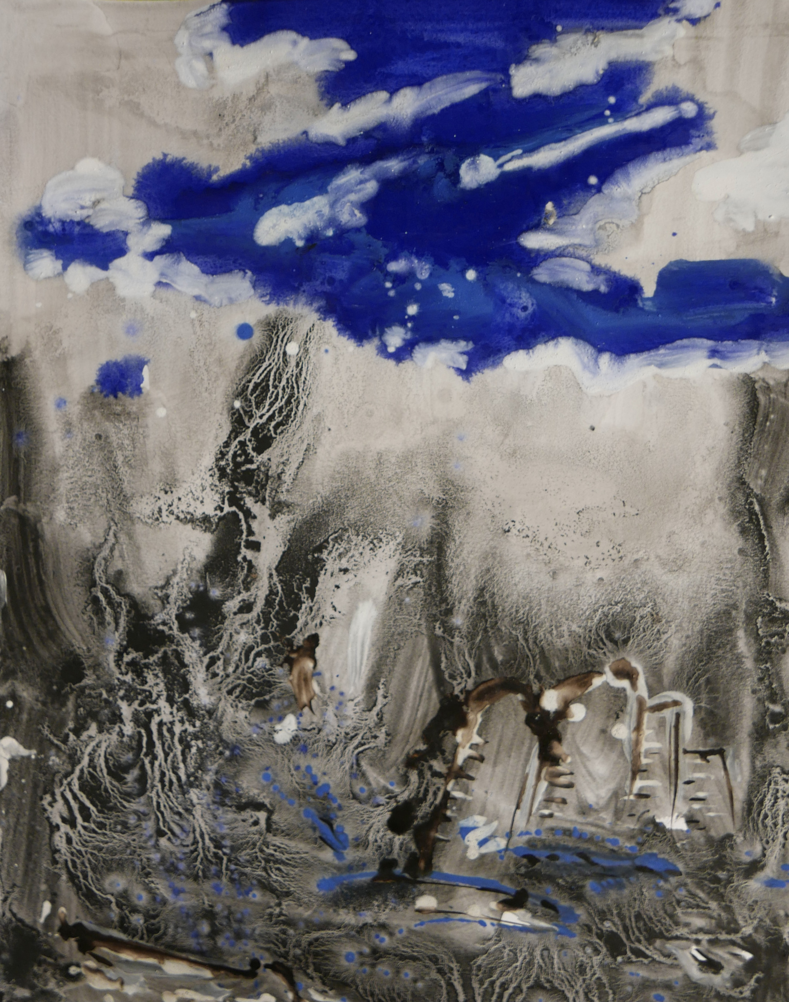 pigment, inkt, sumi-e op papier - geïnspireerd door de Japanse landschapsschilderkunst