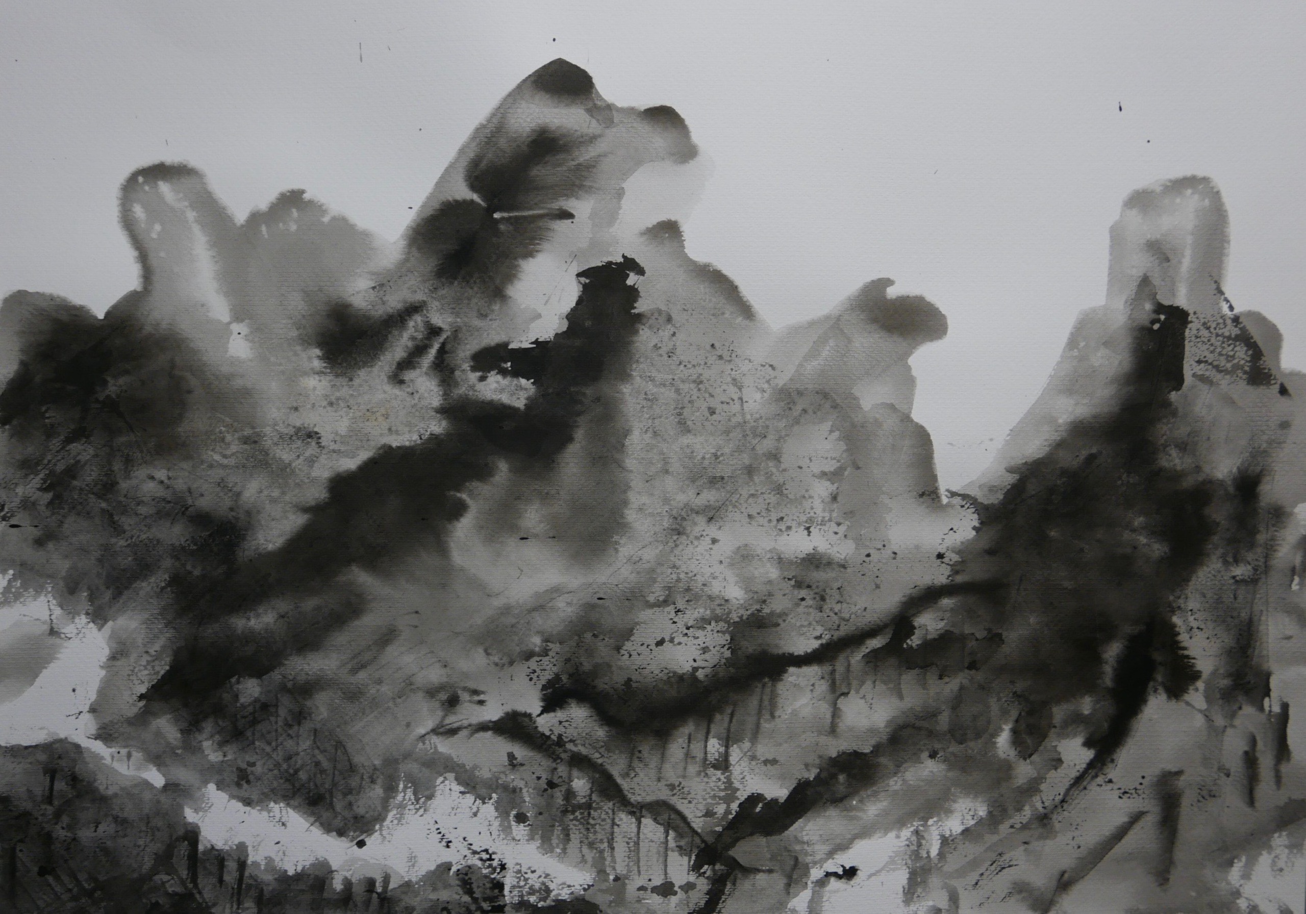 pigment, inkt, sumi-e op papier - geïnspireerd door de Japanse landschapsschilderkunst