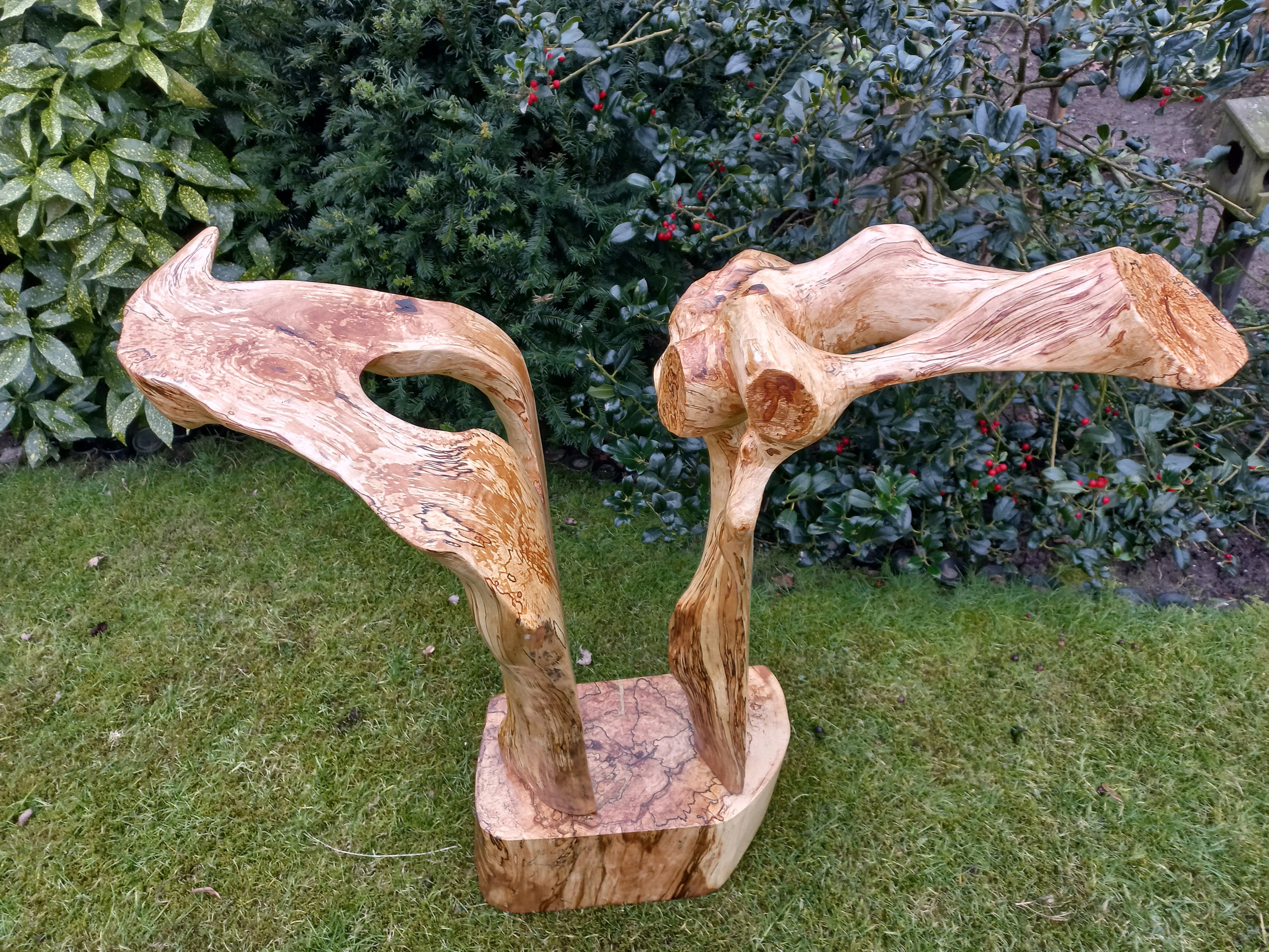 Treurberk is een super mooie houtsoort voor de beeldhouwer - schitterende mooie lijnen je blijft er naar kijken het is echt een cadeautje. Dit kunstwerk kan op allerlei wijze gedraaid worden het gaat dus nooit vervelen