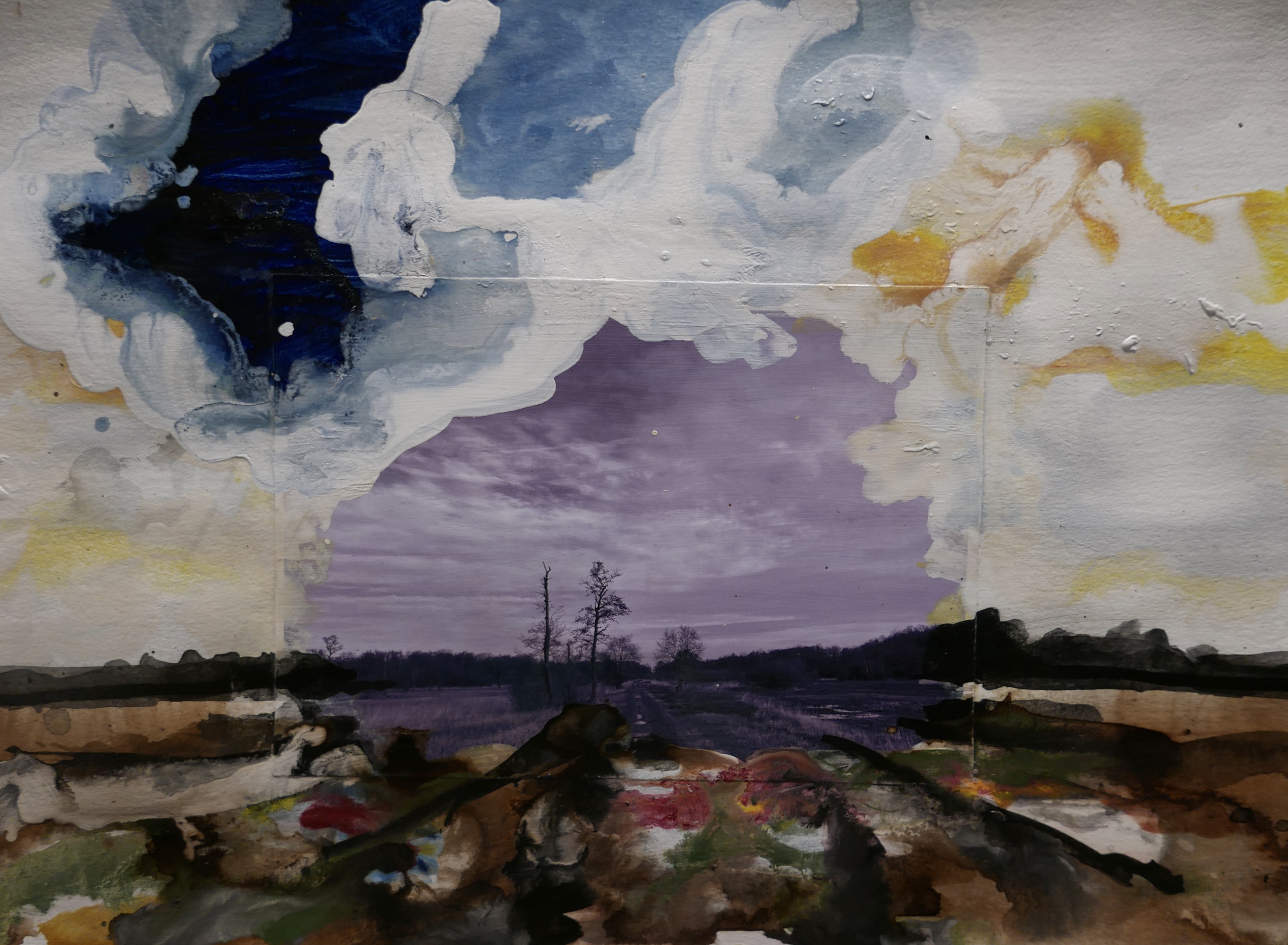 Thema in mijn werk is vaak de horizon. Het landschap dat voor je voeten ligt waar de horizon je uitnodigt om na te denken waar je vandaan komt en waar je heen gaat.