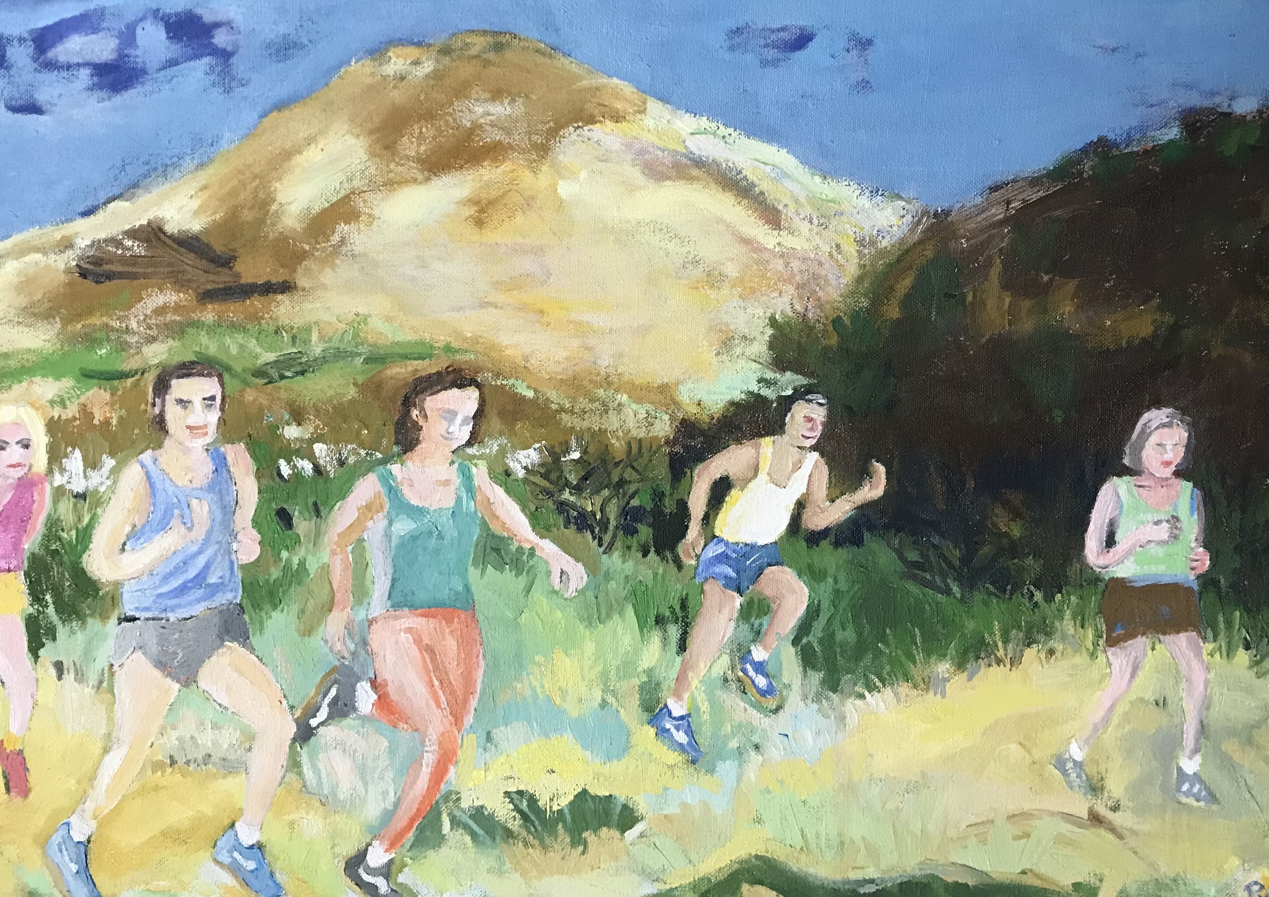 Yellow Blue Red Figures Jogging