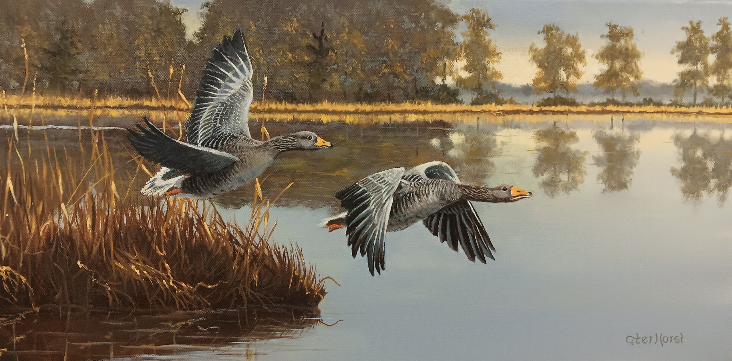 Grauwe Ganzen in de vroege ochtend
