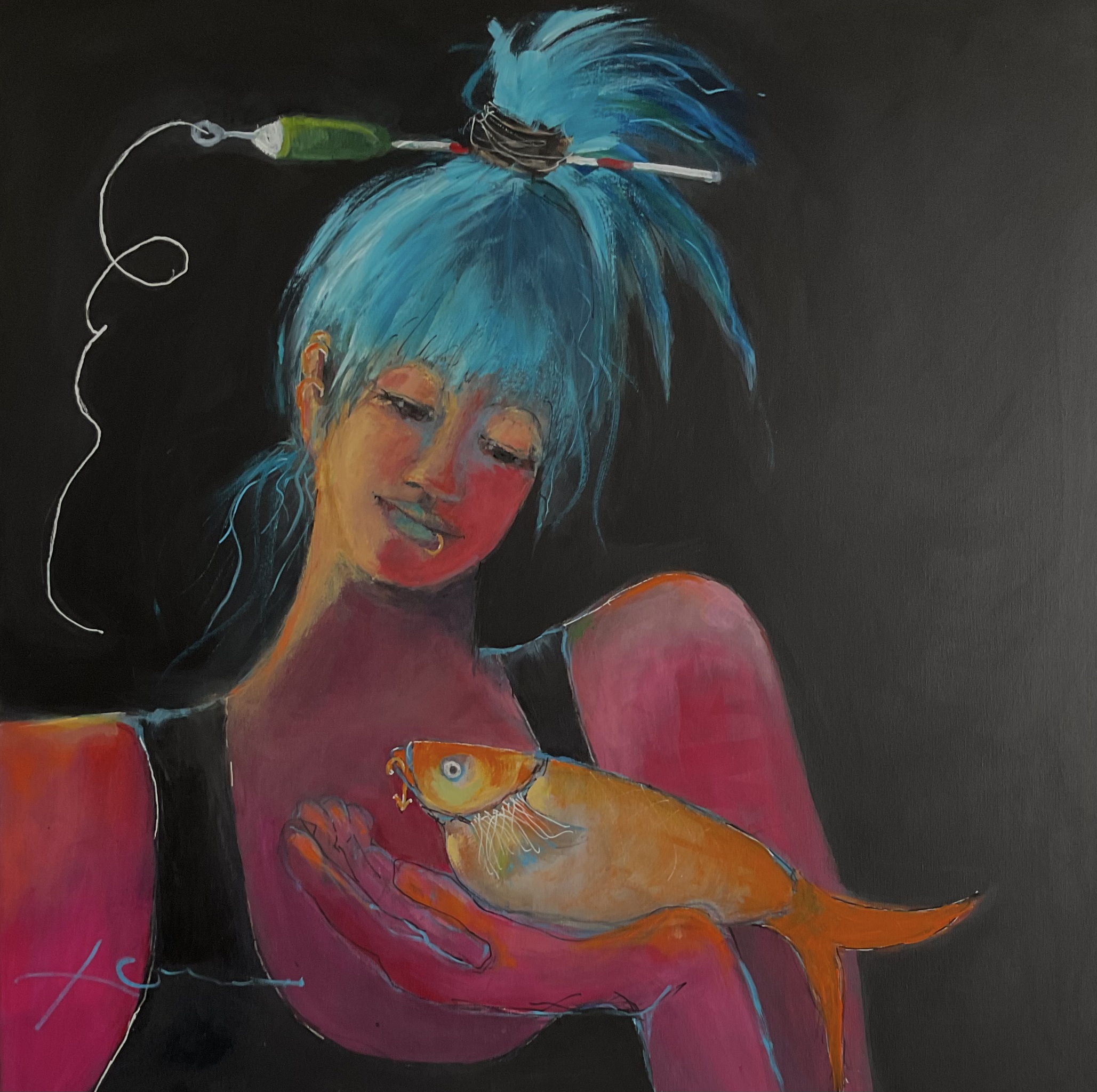 Het meisje kijkt trots naar haar goudvis, bij wie ze zojuist ook een piercing heeft gezet.