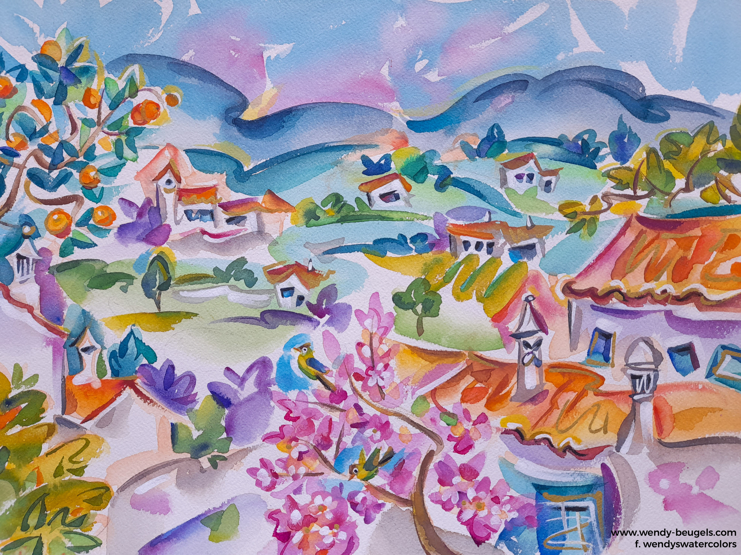 Happy Watercolor inspired by the view of Monchique mountains, Algarve.