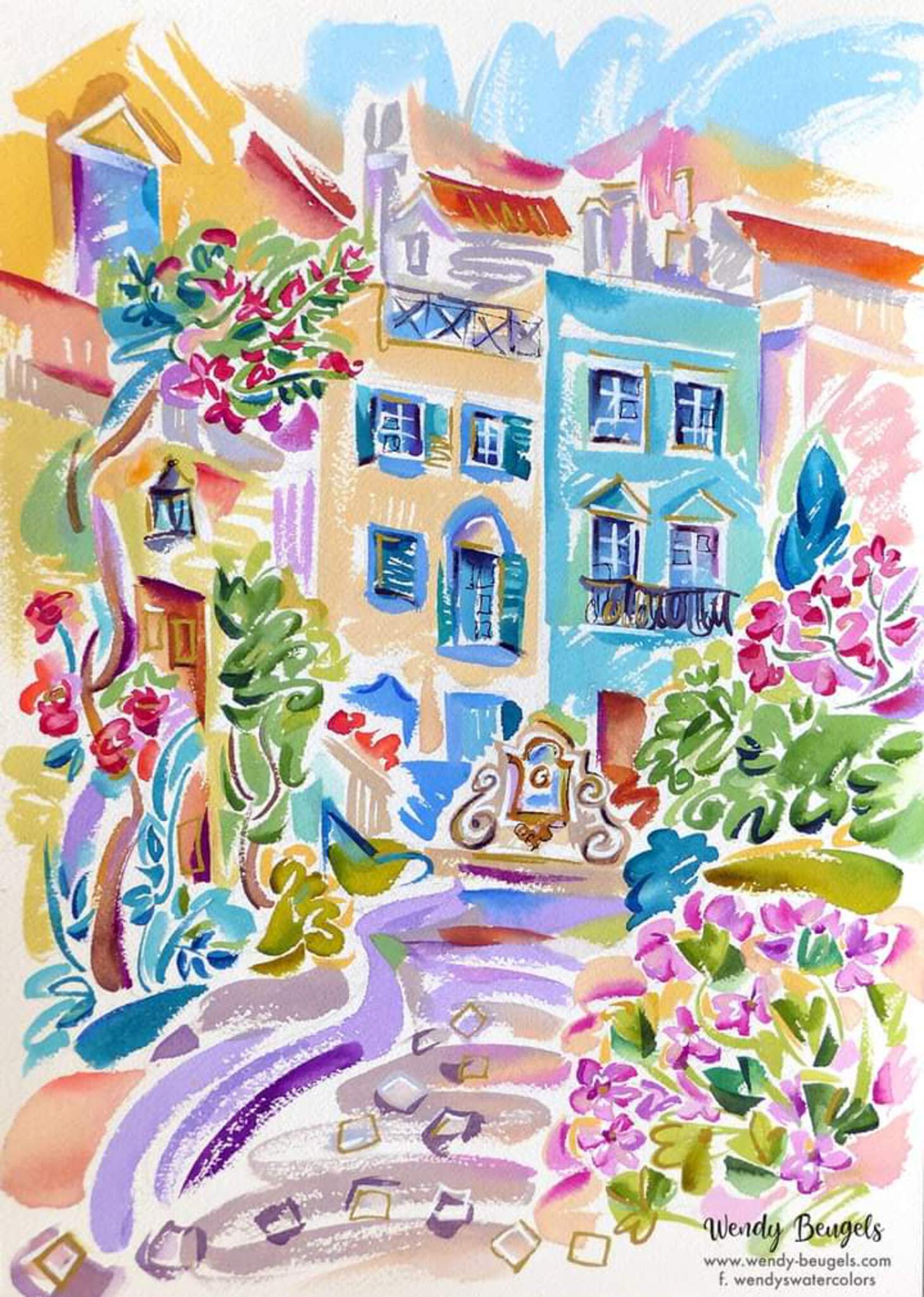 The Old Village Vilamoura design printed on A4 paper with white border, image size 20x15cm.