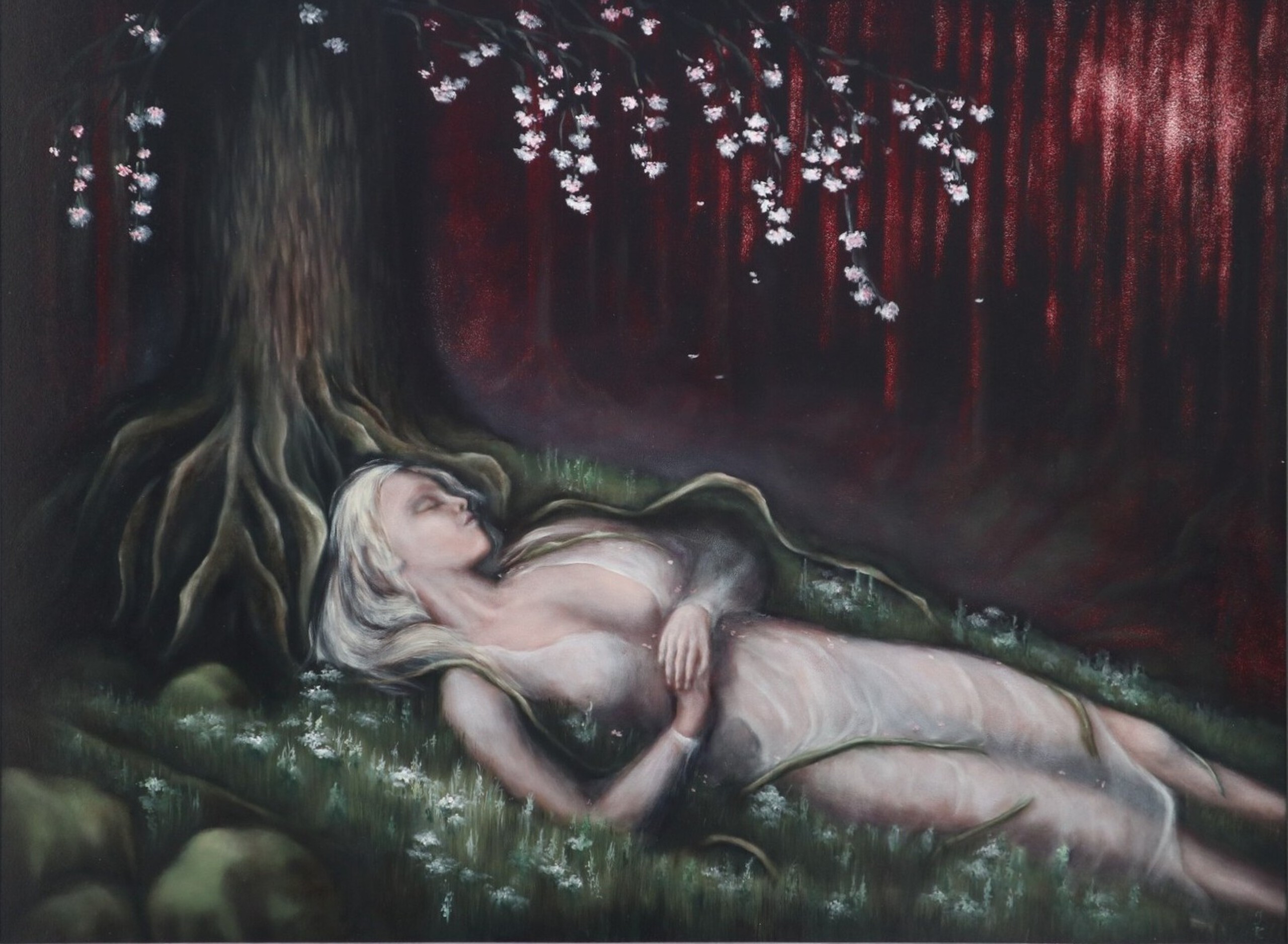 Emotie Spiritueel Vrouw Boom Dood Afscheid Slapen Droom Bloesem Symbolisch Allegorie Allegorisch