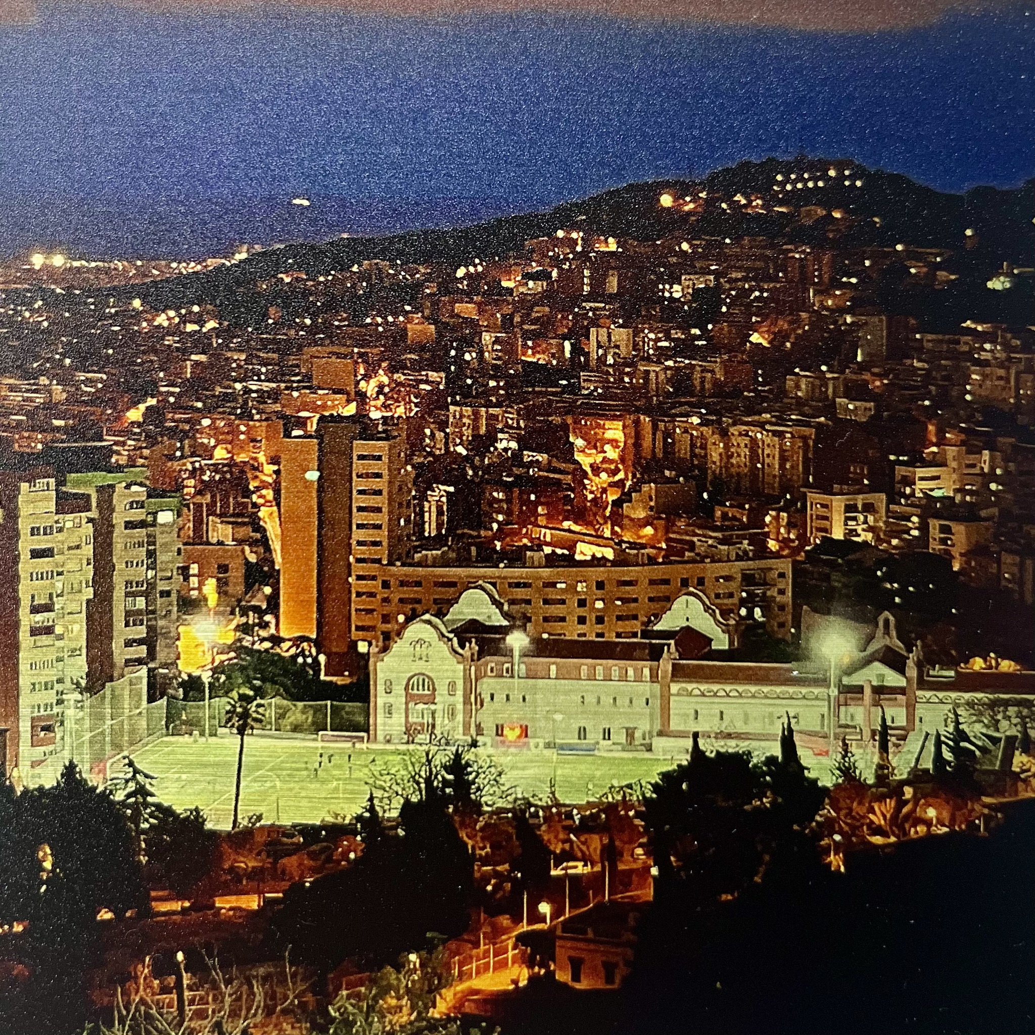 Barceolona op klein formaat, Prachtig licht dat door het materiaal waarop het afgedrukt is, ook nog eens lijkt te bewegen. In oplage van 7.