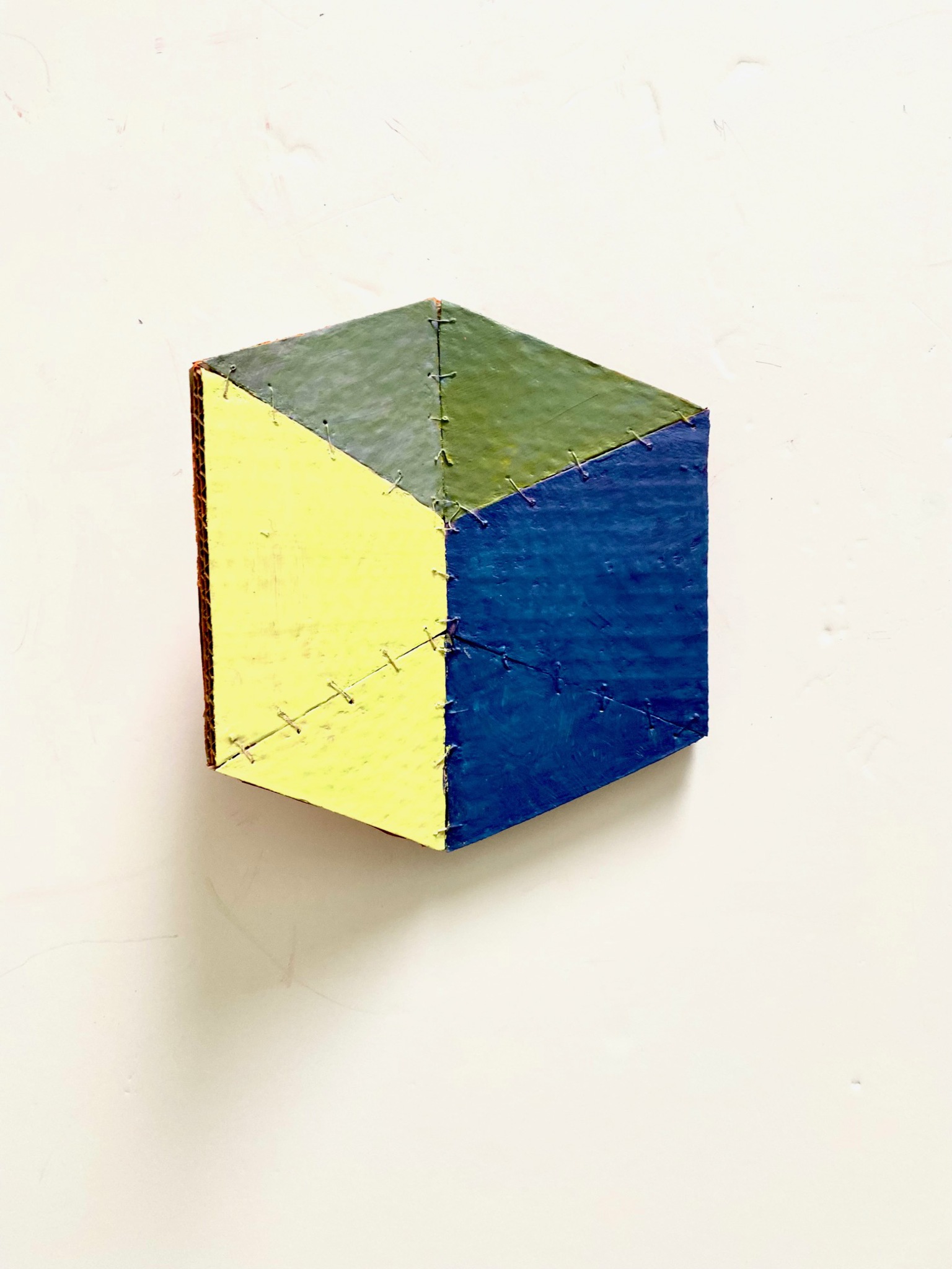 2D werk behoord bij de serie boxes. Na een expositie THT ben ik gestart met een onderzoek naar de dozen waar ik mee gewerkt had. Hoe is dit plat en hoe is dit ruimtelijk weer te geven.