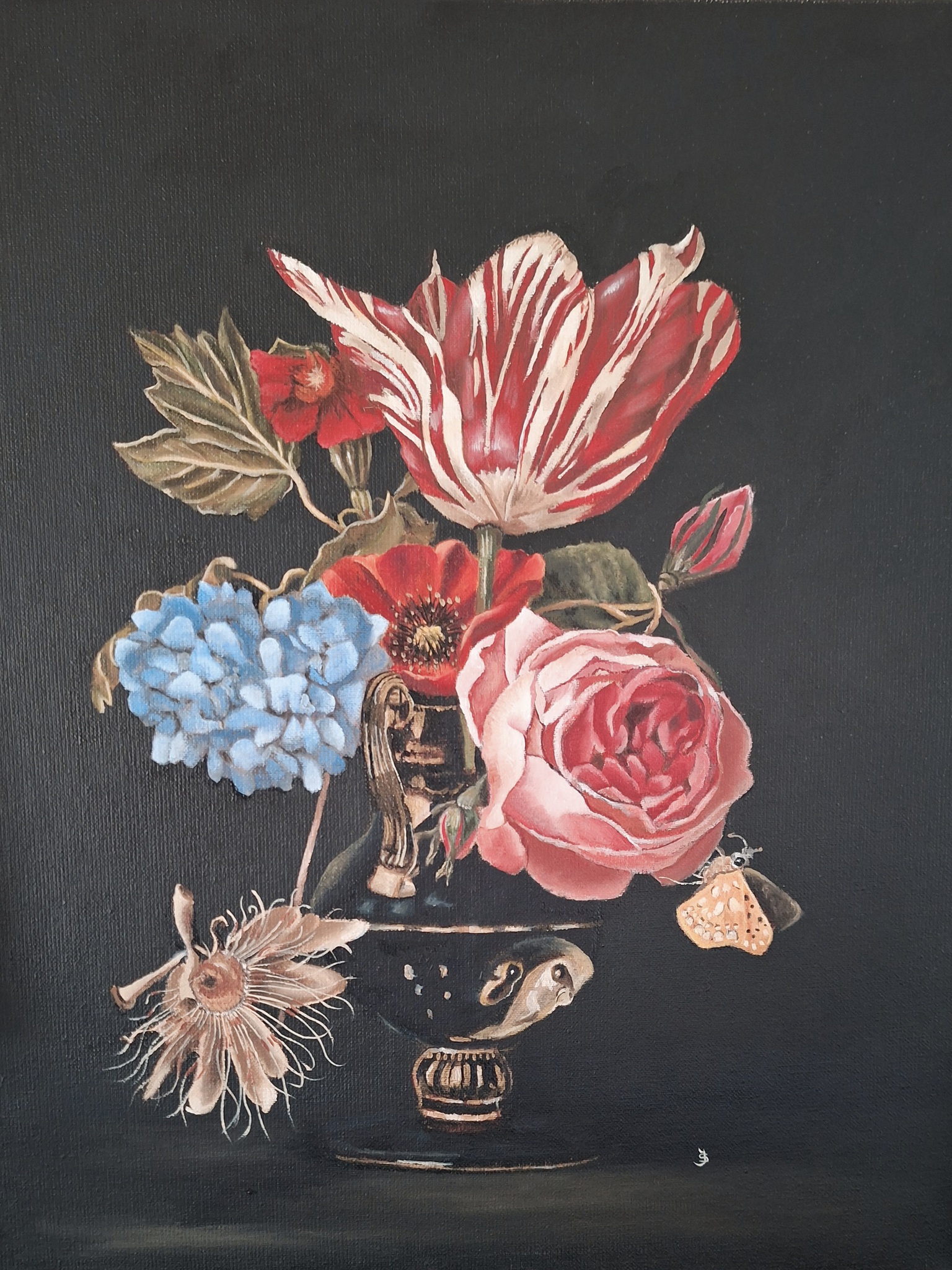 Dit boeket met Passiebloem is geschilderd naar een werk van Hendrick de Fromantiou