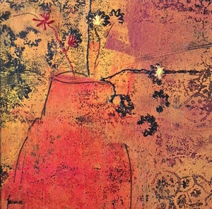 Monoprint, uitgewerkt met o.a. borduurwerk