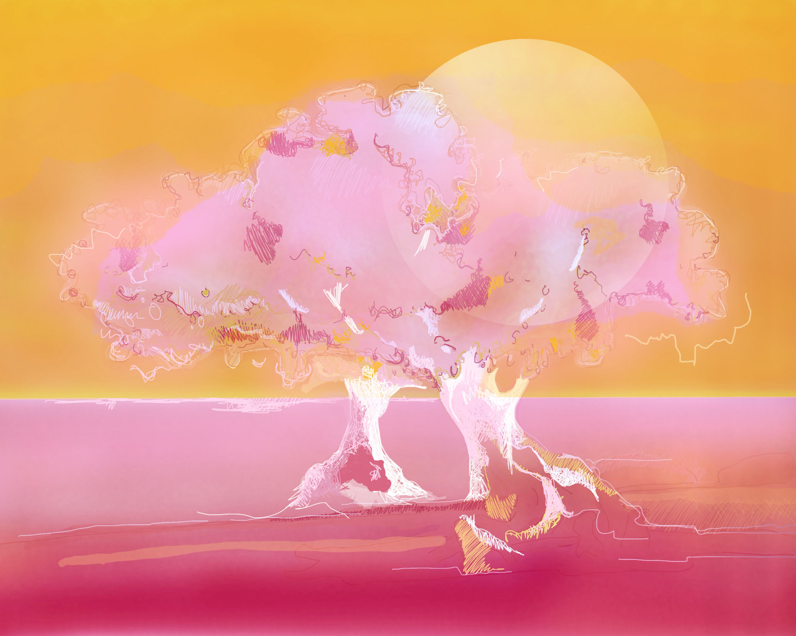 Boom Natuur Roze Oranje Geel Organisch Spiritueel Zon Maan