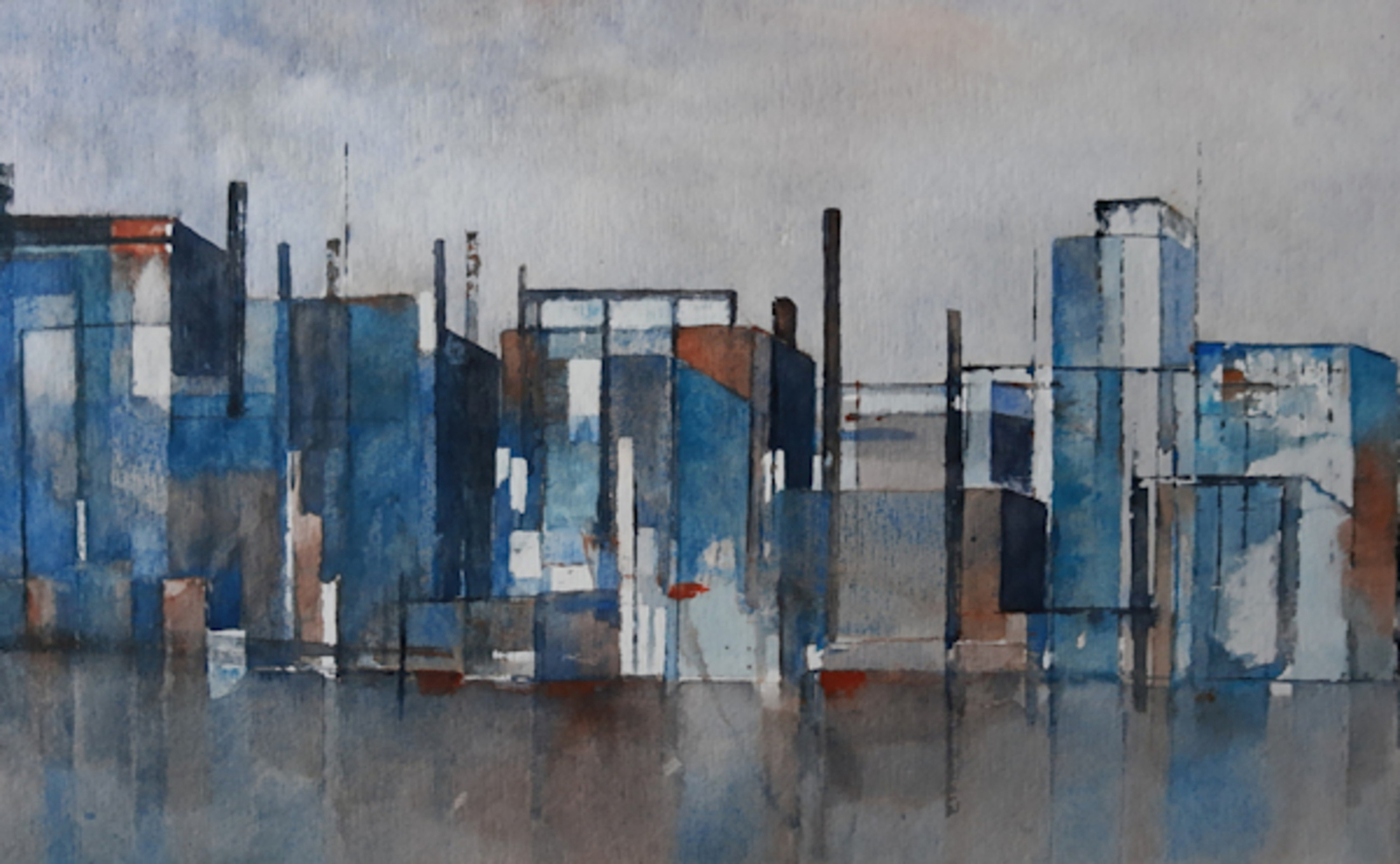 Skyline fabrieken, aquarel