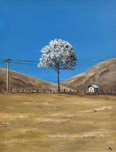 Een eenvoudig landschap met een open lucht en één boom als centraal punt. De nadruk ligt op ruimte, balans en rust. Formaat:24x30x1