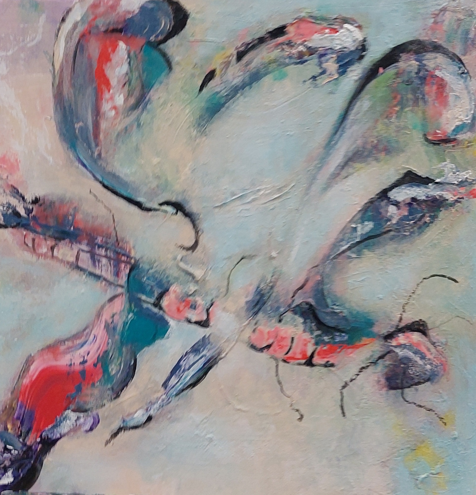 Sinds enkele jaren schilder ik vanuit mijn hart, intuitief ontstaan soms heel bijzondere elementen in mijn werk. Aan mij om dat wat verschijnt de aandacht te geven en het geheel te verbinden.