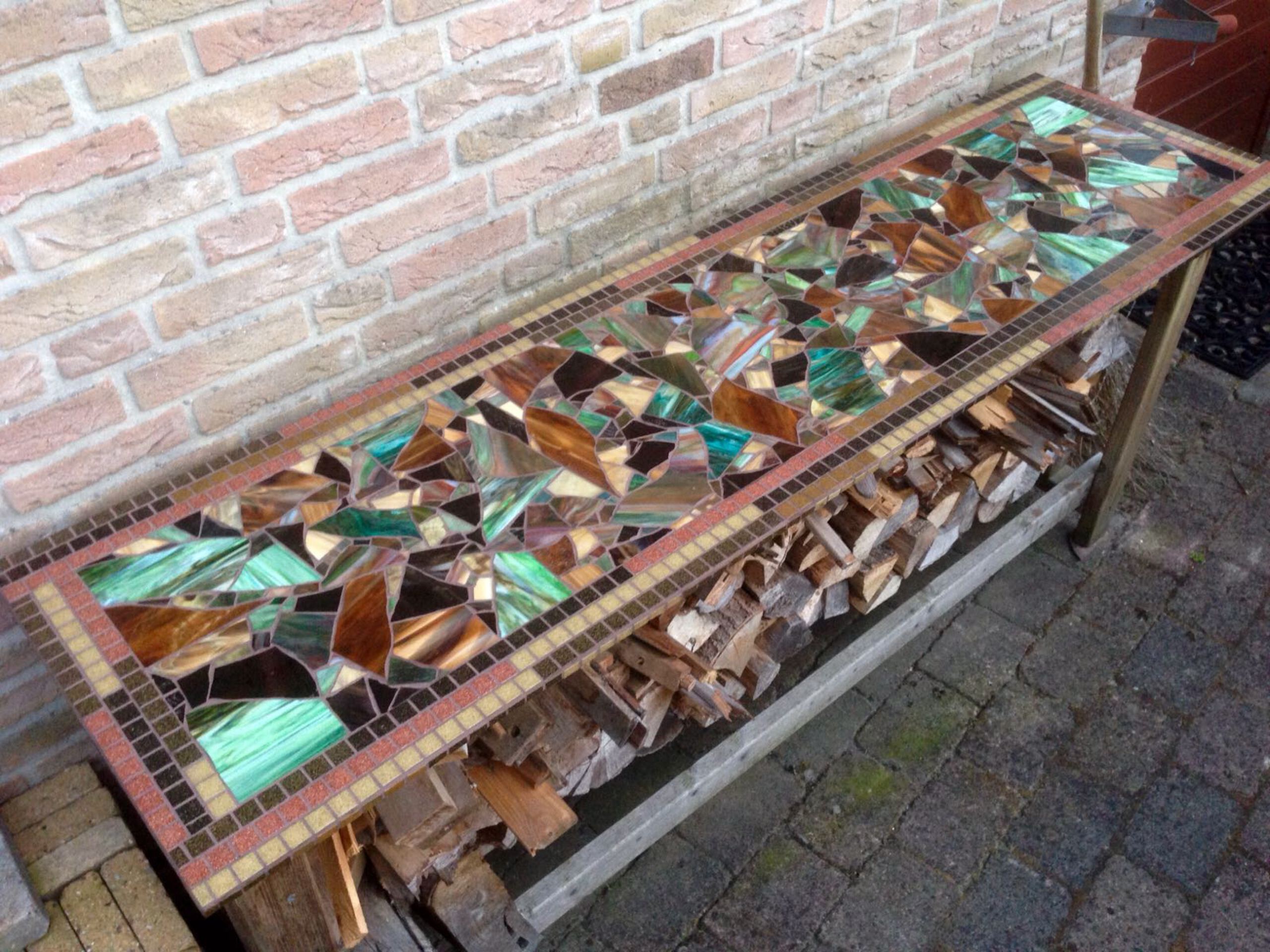 houtopslag met gemozaiekt blad