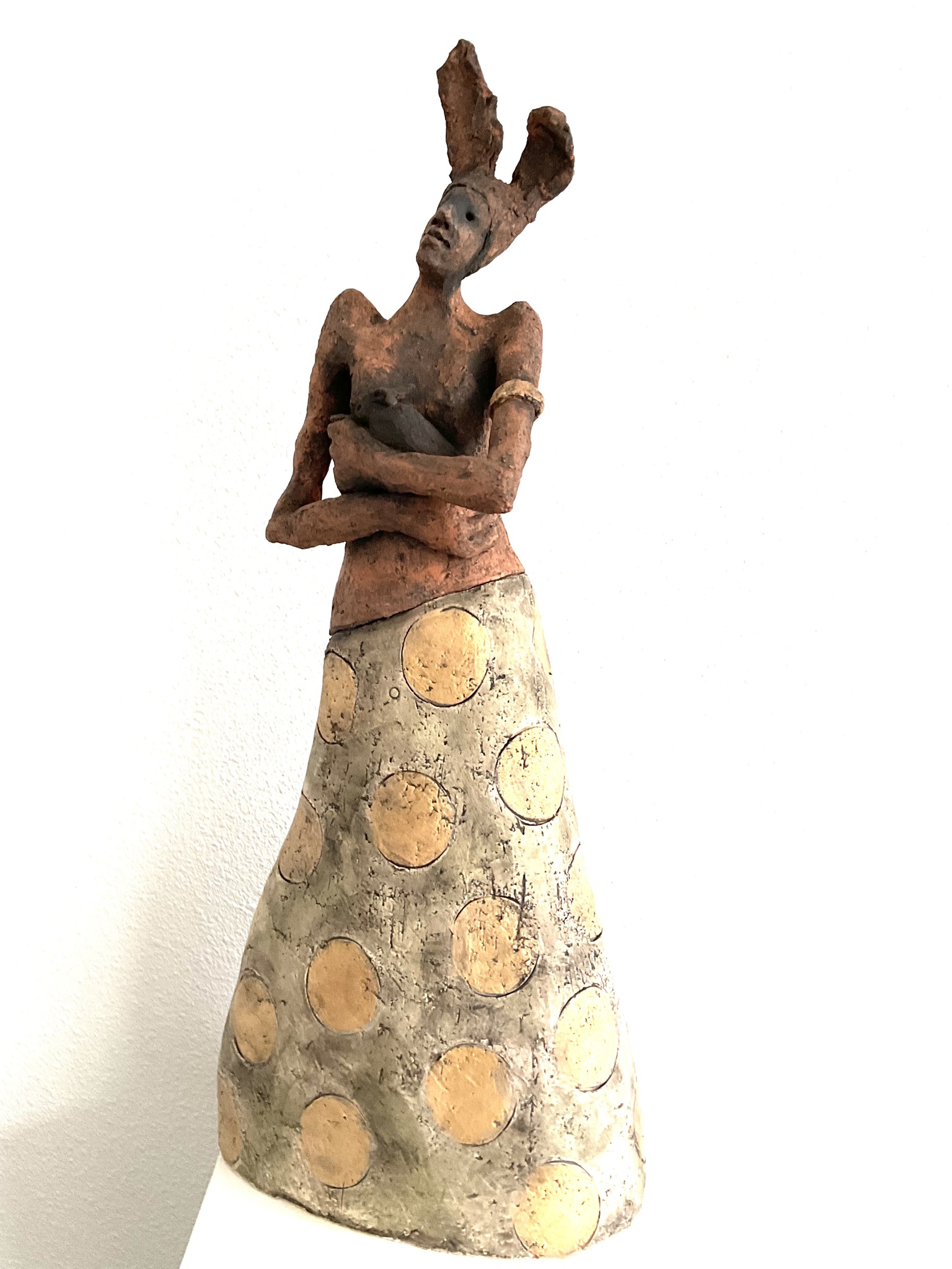 Wat begint als een speelse vorm in klei, groeit bij Loes uit tot een sculptuur vol van karakter. Ze gebruikt oude metalen, raku-stook en ruwe structuren om haar beelden een doorleeft verhaal te geven.