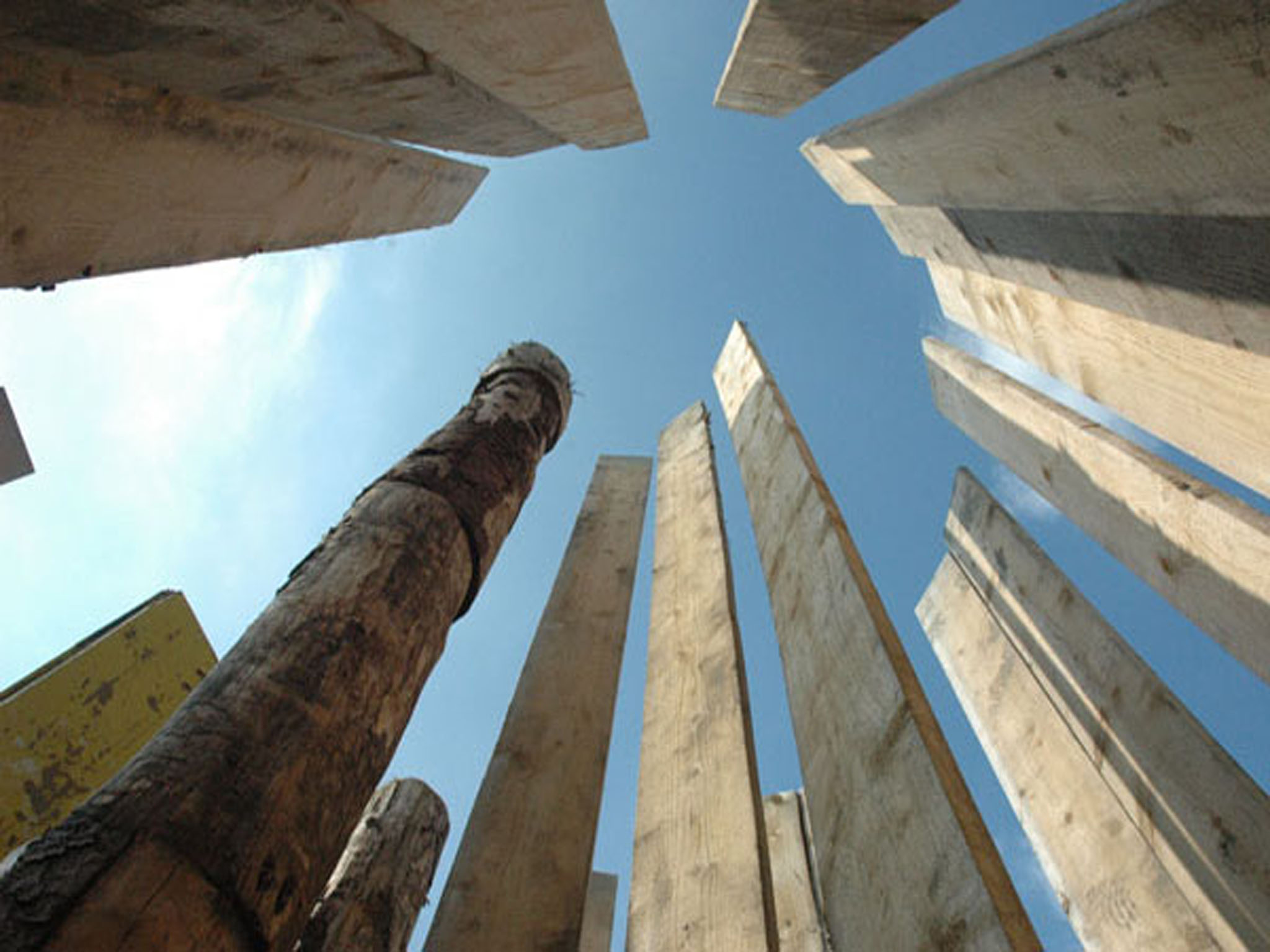 Kunstpodium 'De Leegte' Nieuwolda boomstammen, steigerplanken en bedsteedeurtjes