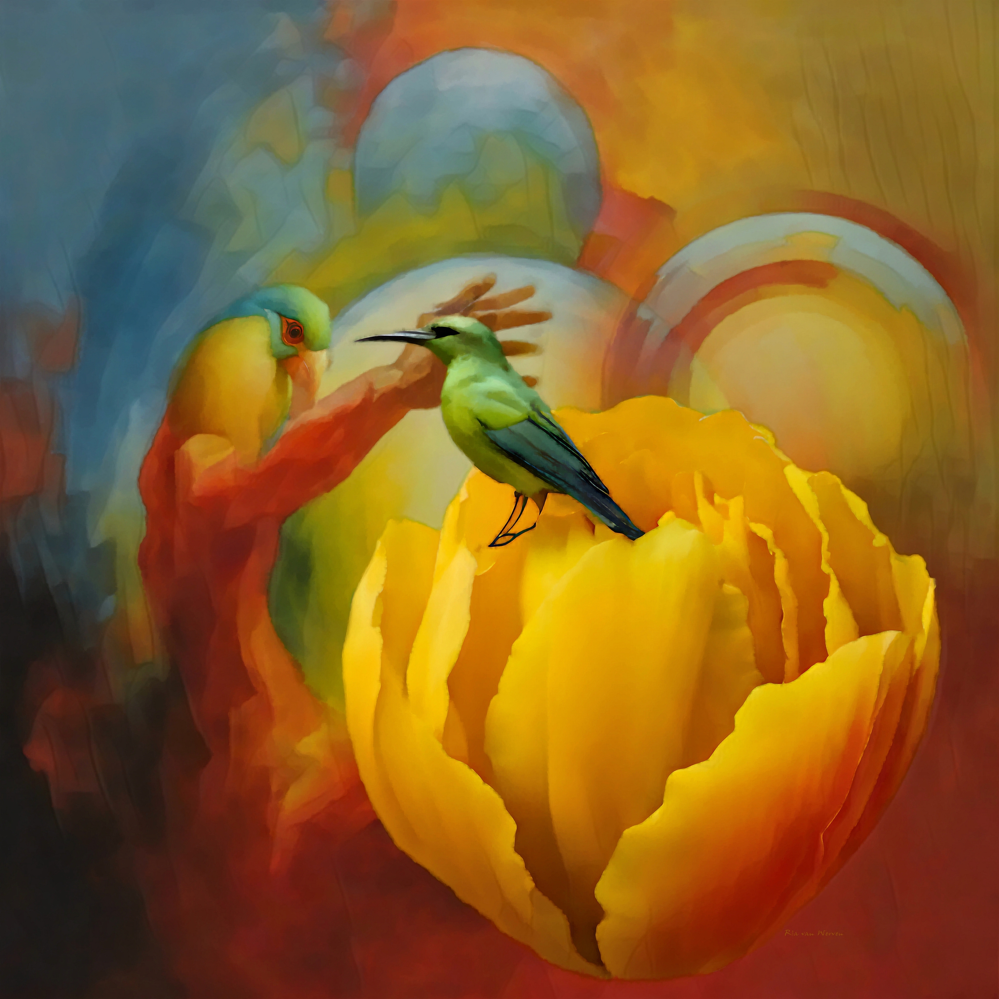 Ik ben Ria van Werven, digitale kunstenaar uit Zwolle, met een passie voor kleur en abstractie. In mijn werk zoek ik naar balans tussen chaos en harmonie-tussen wat zichtbaar is en wat alleen gevoeld kan worden. Mijn kunst is een expressie van vrijheid, verwondering en de kracht van kleur.