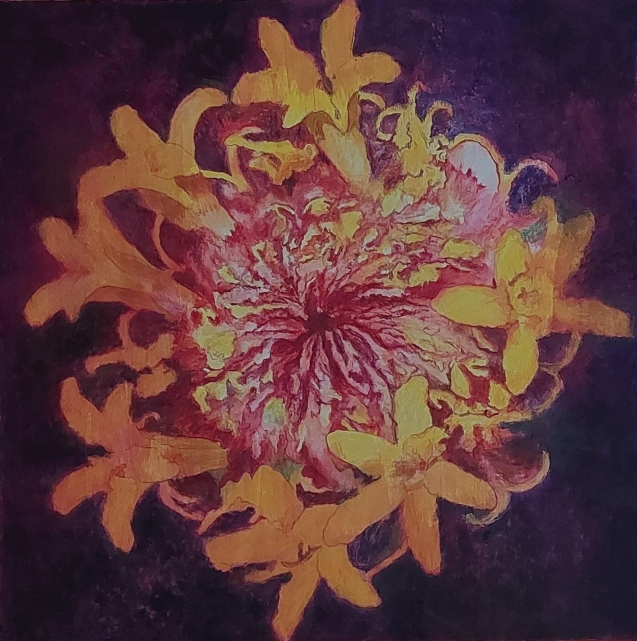 Papier Acrylverf Aquarelpotlood Pastelkrijt Donkerpaars Geel Oranje Rood Roze Bloem