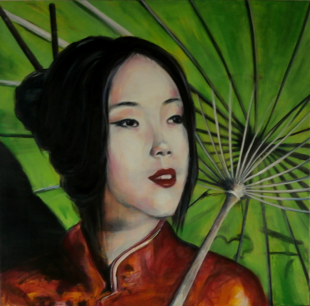 Schilderij Oranje Kleurig Kleuren Van Kunst Met Paraplu Portretschilderij Carla Oosterse Day Schilderles Workshops May Lieshout Veghel Oss Dinther Nistelrode Uden Kunstcollectief Chineesrestaurant Schijndel Heesijk
