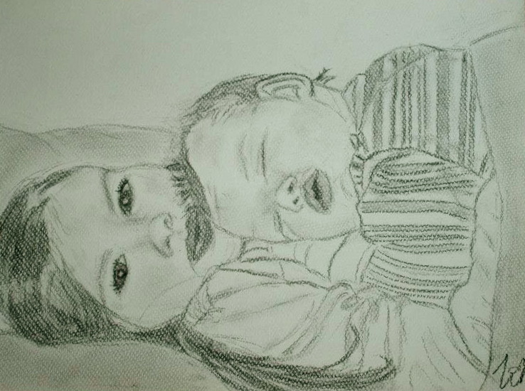 Baby Tekening Houtskool Lief Zusjes