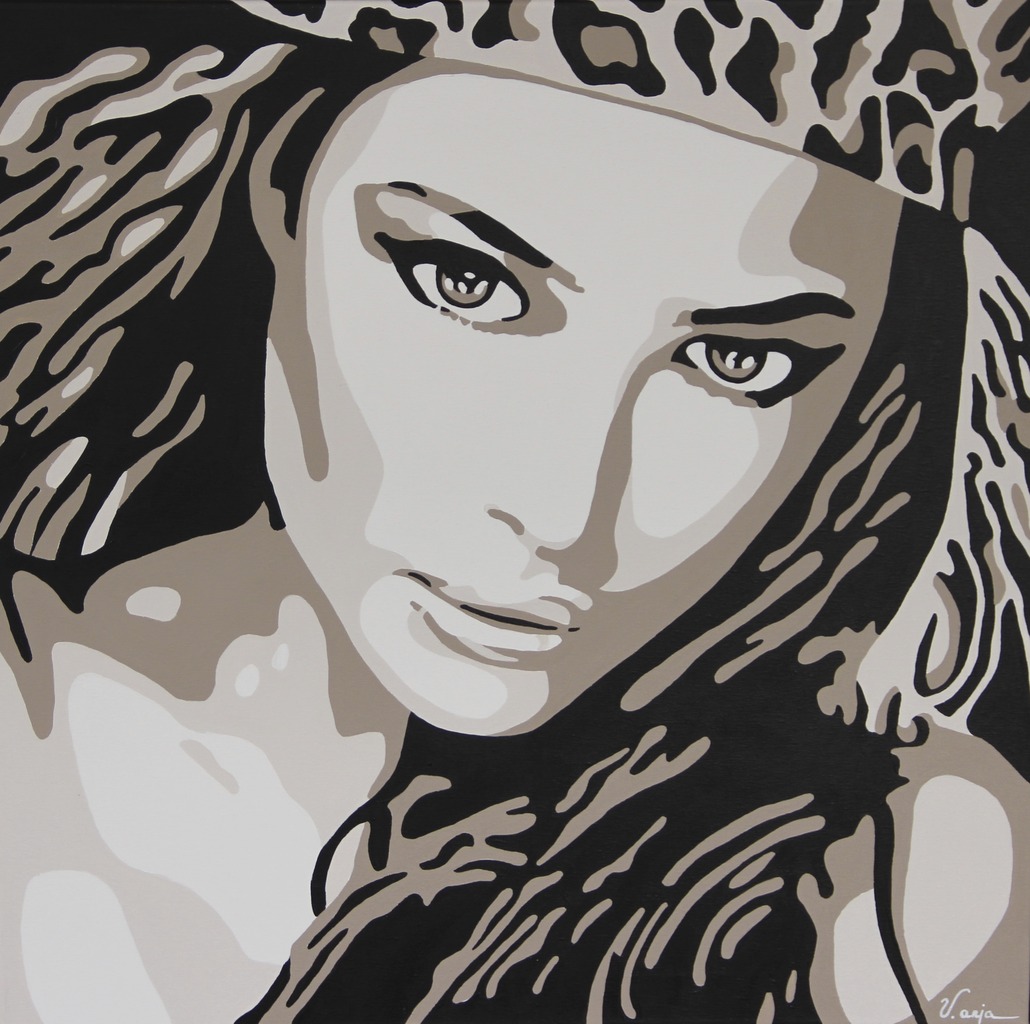 Schilderijen in olieverf. Vrouwelijke schilderijen met een voorkeur van close-up fragmenten, gebracht in een realistische stijl of in een popart stijl.