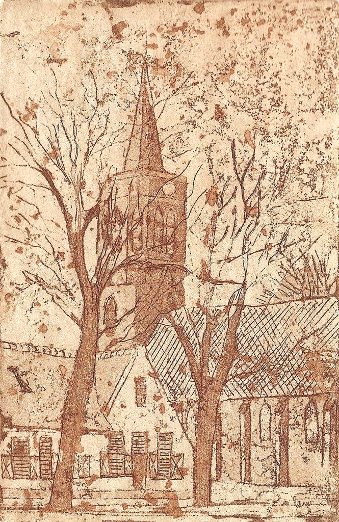Realistisch Laren Grafiek Kerk Church Ets Realistic Aquatint Etching