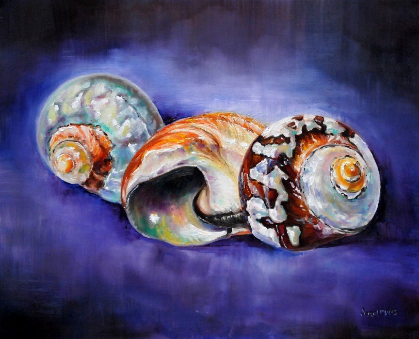 Schelpen Shells Turbo Stilleven Still Life Blue Blauw Realisme Olieverf Schilderij Oil Painting