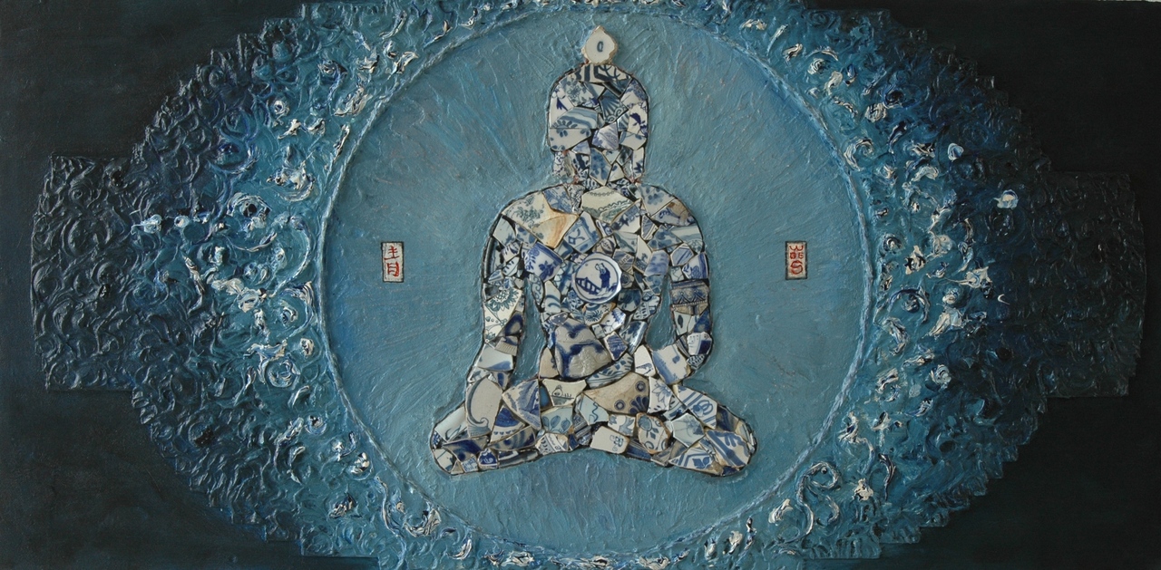 Blauw Boeddha Scherven Delfts