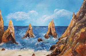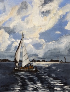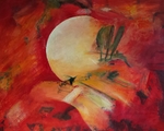 De keuze van mijn kleuren is afhankelijk van mijn stemming, dat merk ik op in mijn schilderijen. Ik probeer veel technieken en materialen uit. Ik werk graag met gemengde technieken op een doek. Het gebruik van diverse materialen geven een extra dimensie aan de doeken. Met de 1e laag kleuren en vormen ga ik pas echt bepalen wat het thema/onderwerp van het doek moet worden.