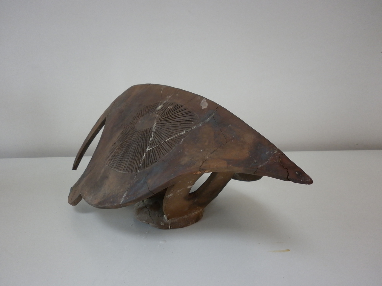 dit dier is met geheimzinnigheid om geven,uw eigen fantasie wordt aan het werk gezet.De kleur is ontstaan door verhitting van ijzeroxide op de huid.de brokstukken zijn,na uit zee gevist te zijn weer samen gevoegd!