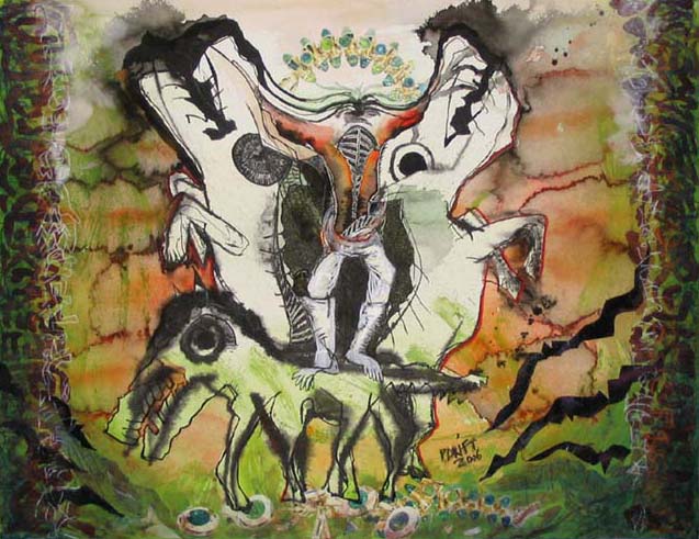 Pieter Drift (Vlaardingen, 1967), afgestudeerd in 1991 op de de Academie van Beeldende Kunsten te Rotterdam, maakt etsen, tekeningen en collages.