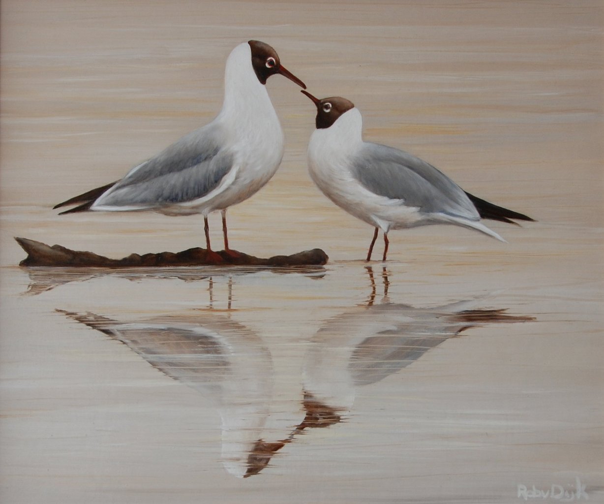 Olieverf Verliefd Gespiegeld Fijnschilderkunst Kokmeeuwen Kokmeeuw