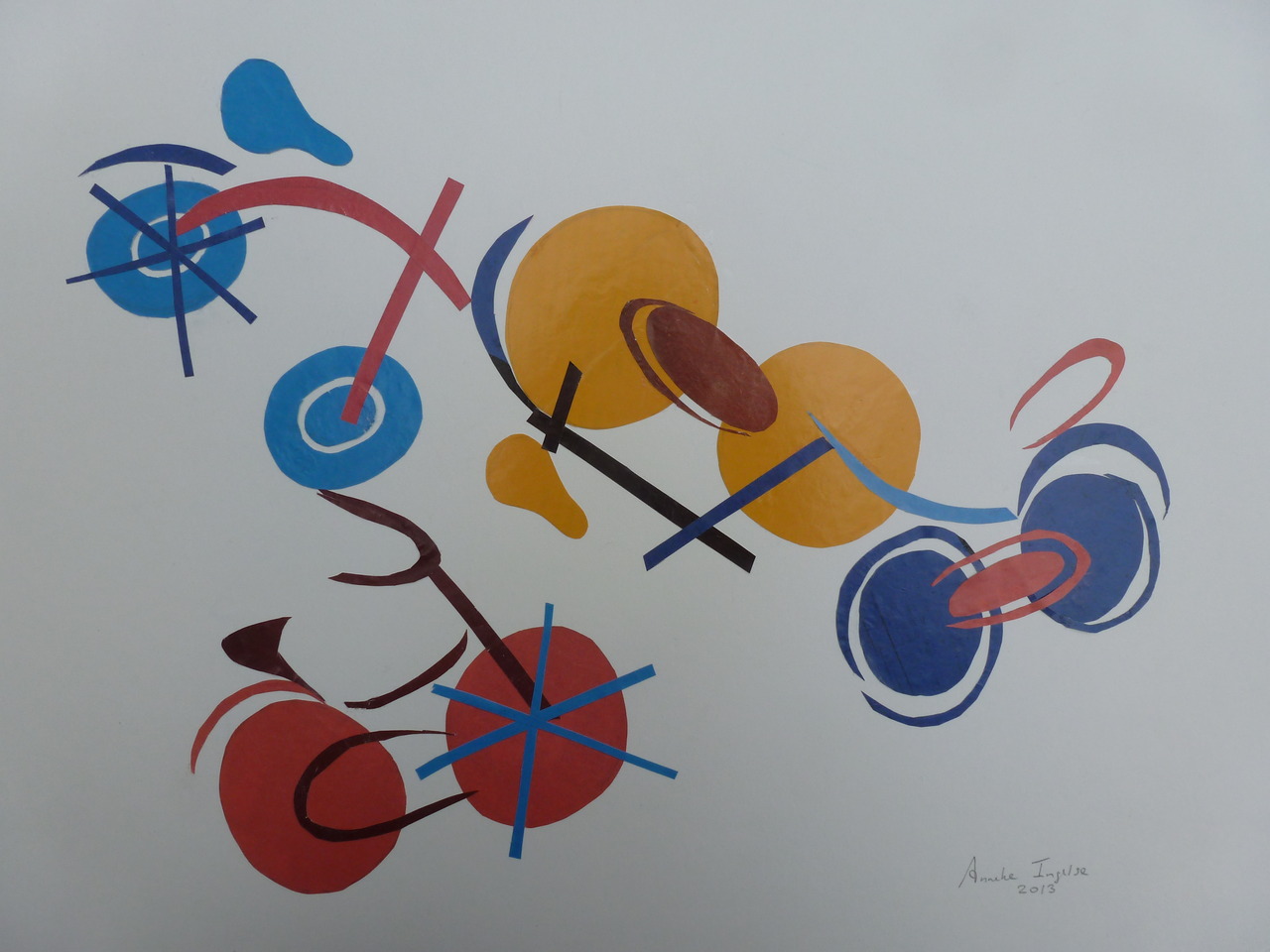 Abstract Geel Blauw Yellow Bruin Blue Fietsen Collage Brown Bicycles