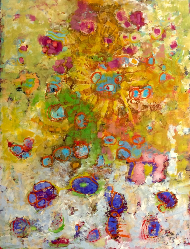 Abstracte schilderijen en dito beschilderde objecten in een stijl die ligt tussen geraffineerde eenvoud en georganiseerde chaos