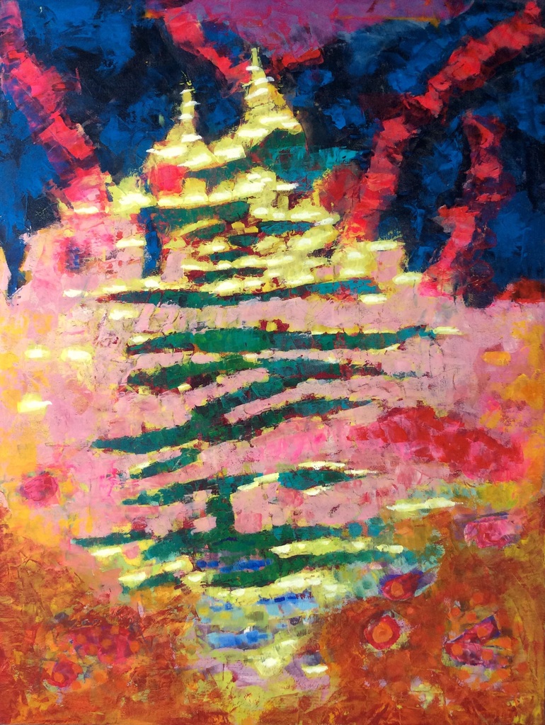 Abstracte schilderijen en dito beschilderde objecten in een stijl die ligt tussen geraffineerde eenvoud en georganiseerde chaos