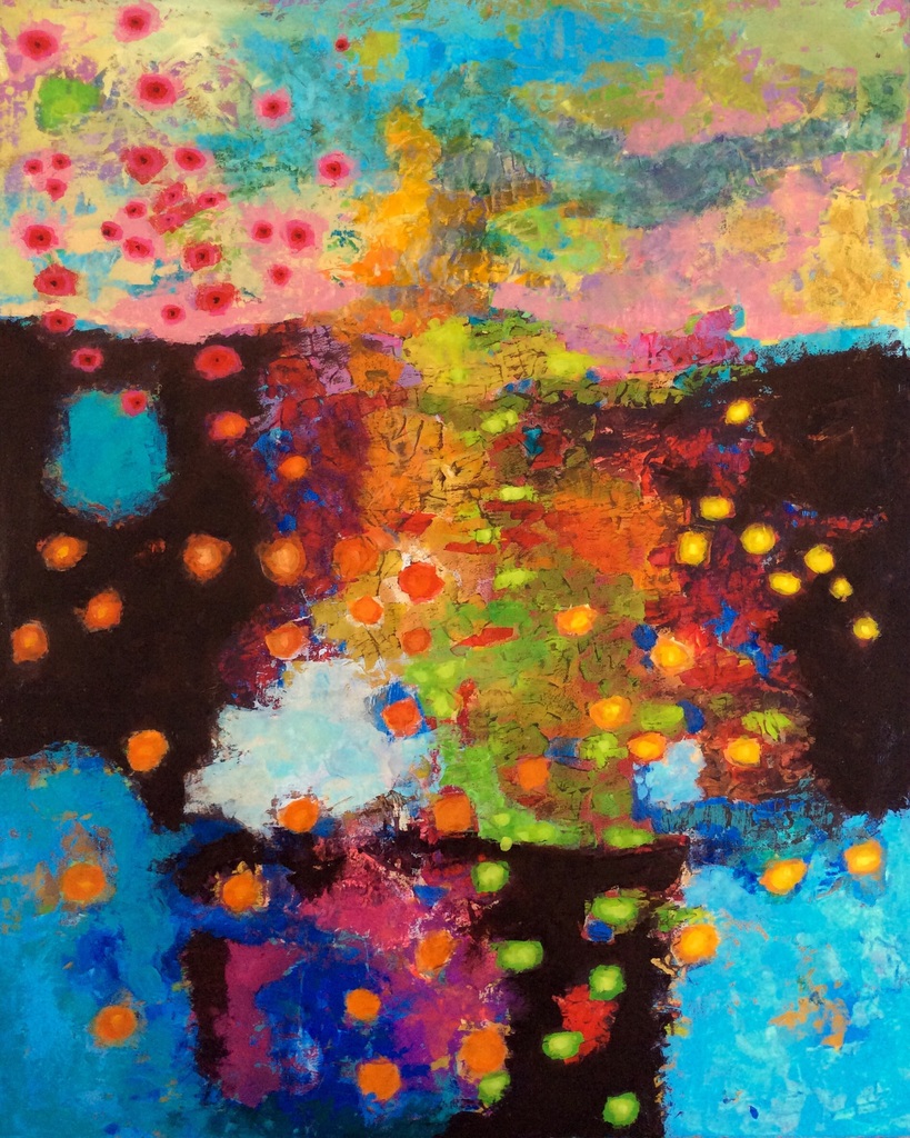 Abstracte schilderijen en dito beschilderde objecten in een stijl die ligt tussen geraffineerde eenvoud en georganiseerde chaos