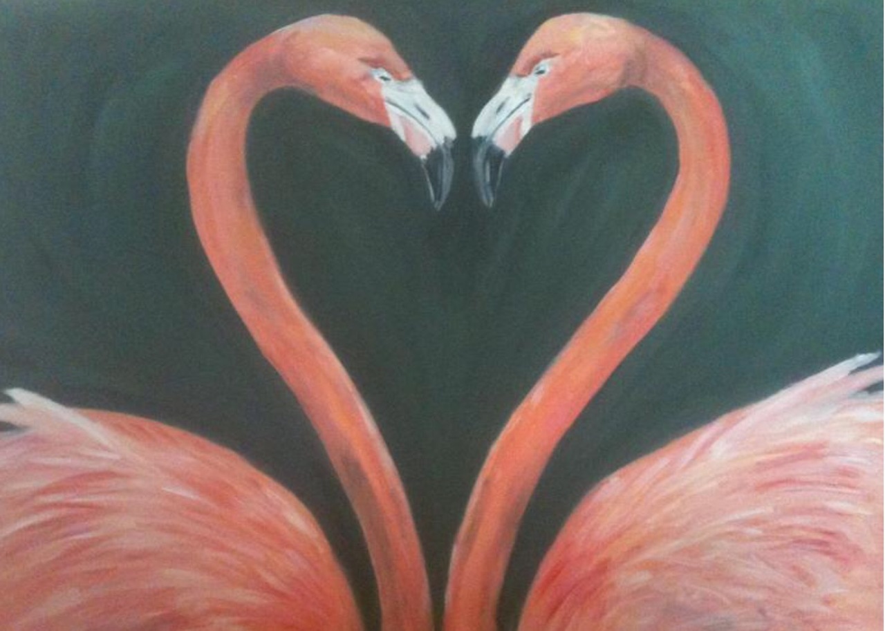 Acryl Realistisch Flamingo''''s