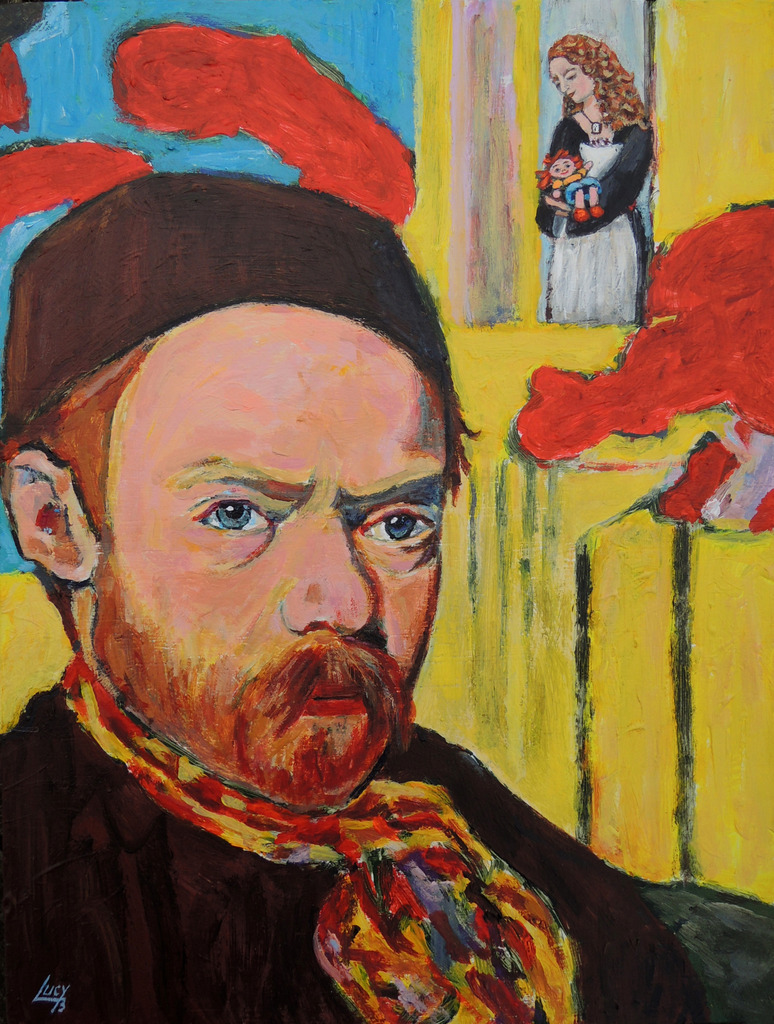 Self portrait (32,4x24,5cm) after Meijer de Haan. Added: La Poupée de La Paix et moi