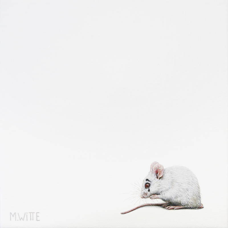 Marcel Witte is een visuele verhalenverteller die de hedendaagse maatschappij subtiel bekritiseert. Zijn schilderijen van dieren tegen een lege achtergrond balanceren tussen realisme en fantasie.