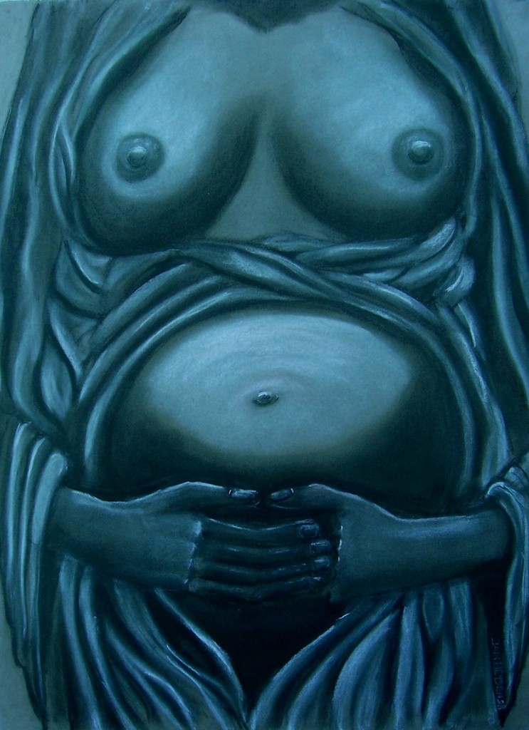 Zwanger figuur met geplooide kleding