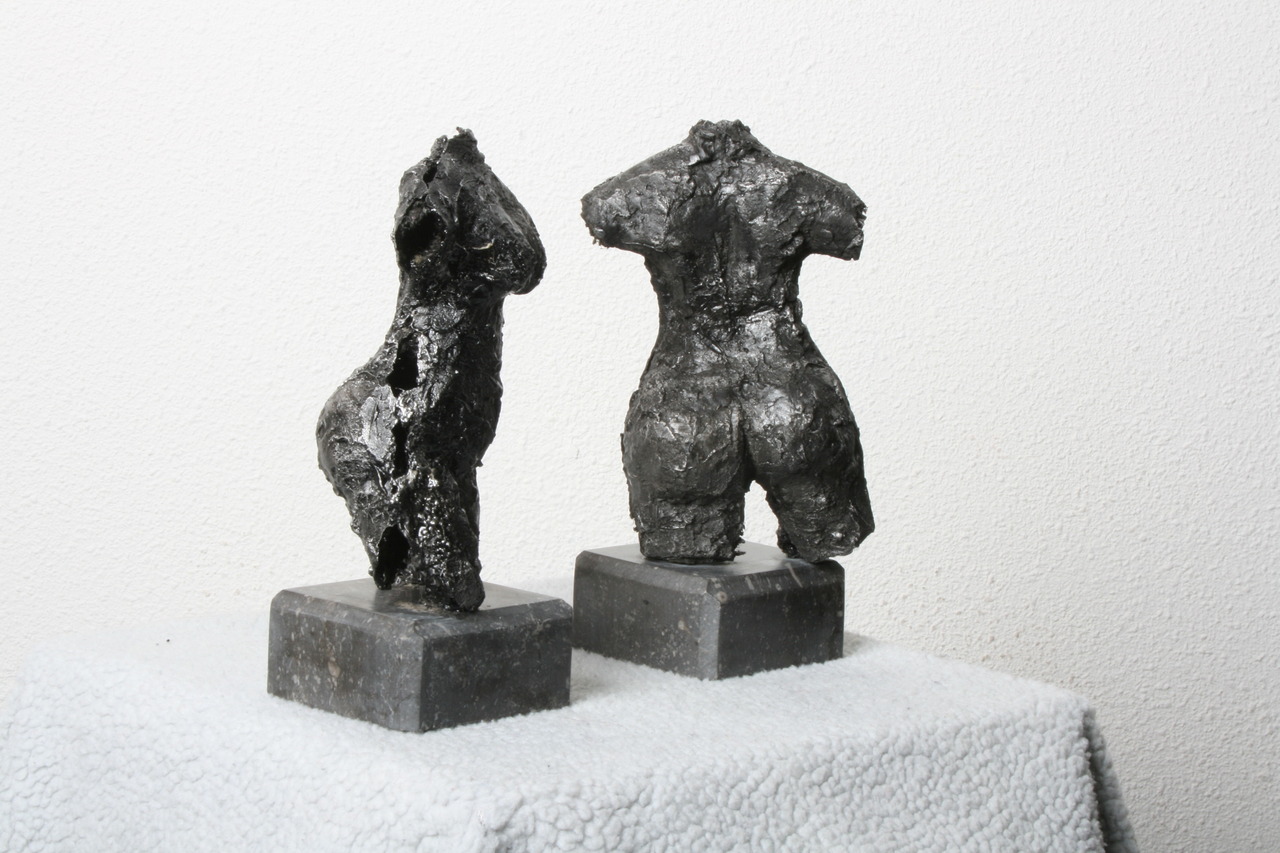 Luchtige vrouwen opgebouwd uit twee, dunne delen aluminium cement. Afgewerkt met zilverpoets.