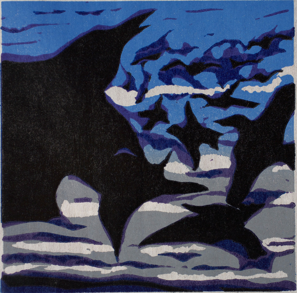 Grote zwarte wolk al fladder krassend tegen een grijsblauwe lucht Stora svarta moln fladdrande kraxande mot en grå-blå himmel